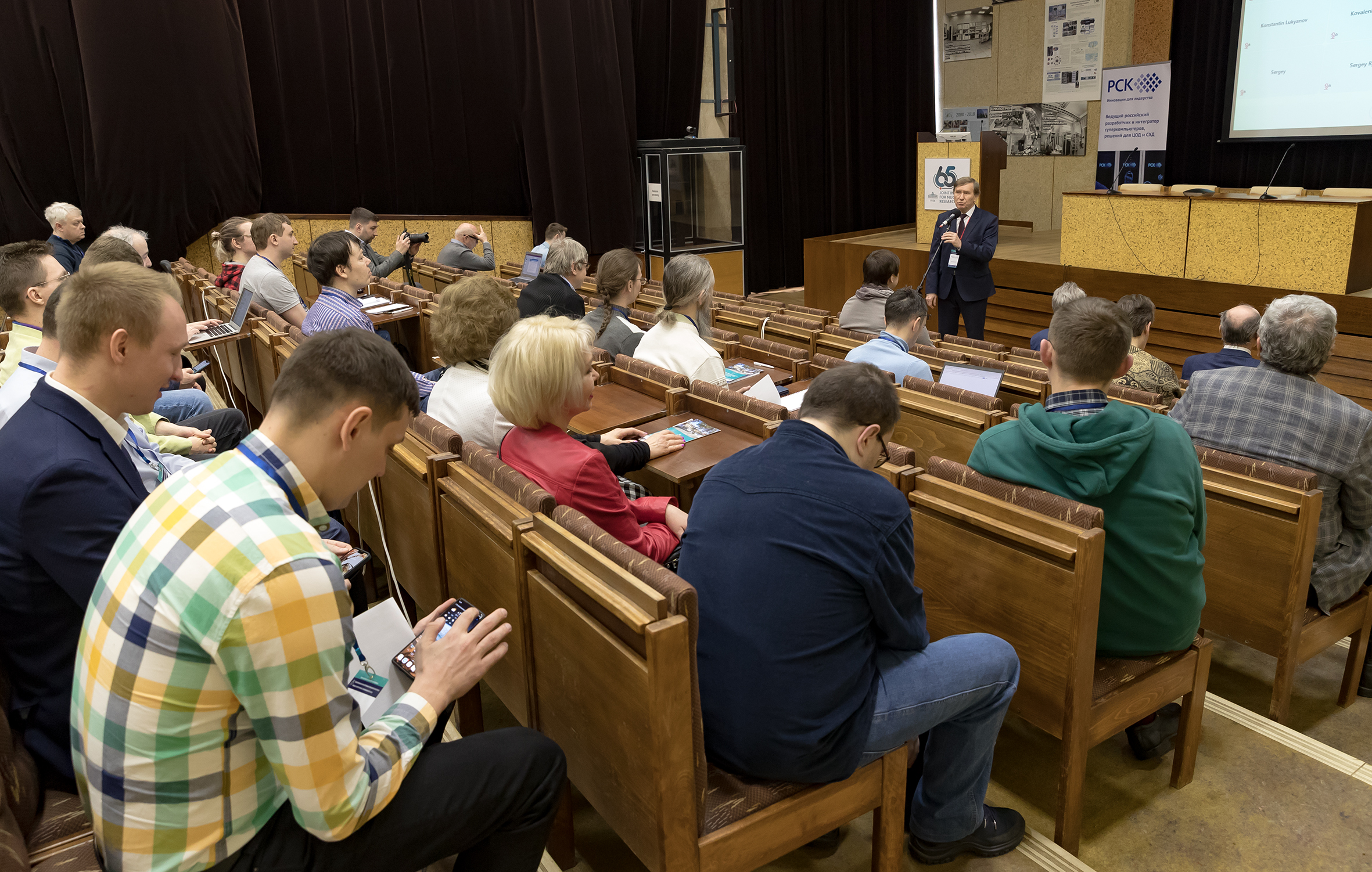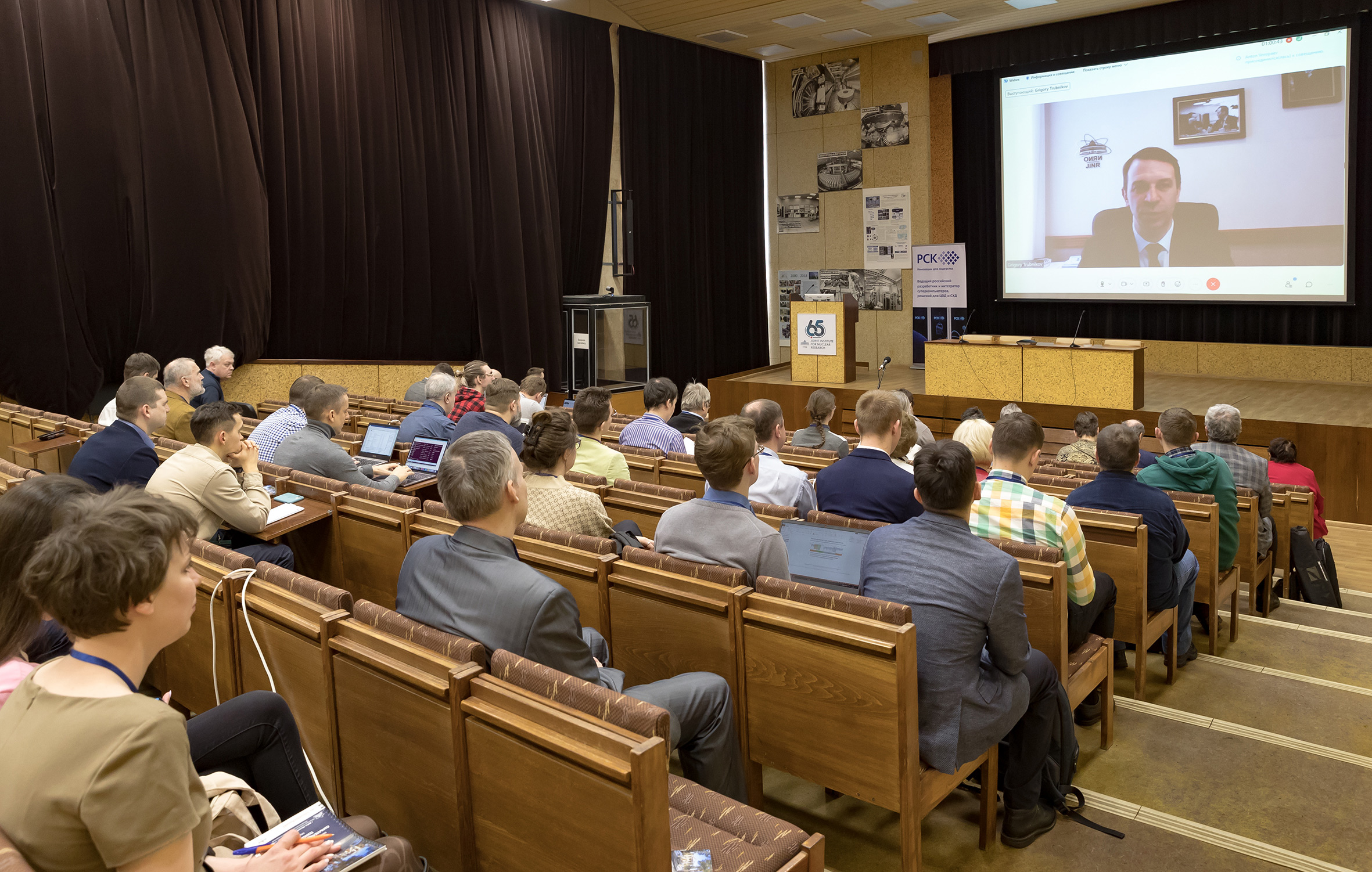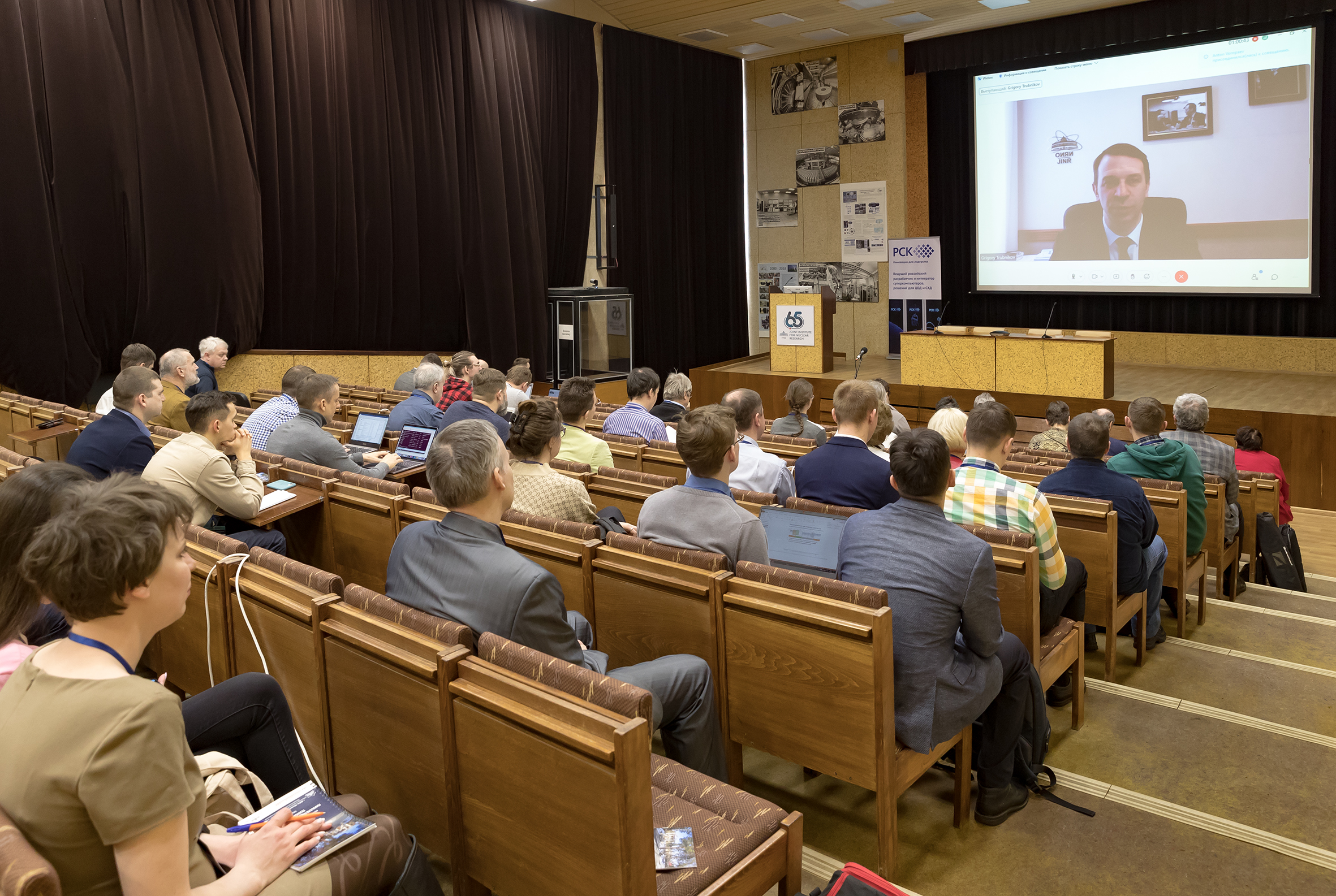 Григорий Трубников представил доклад о научной программе ОИЯИ и истории Института. Говоря об Информационном вычислительном центре ОИЯИ, директор Объединенного института подчеркнул, что центр включает в себя один из лучших суперкомпьютеров в России и одну из лучших в мире систем обработки, анализа и хранения данных. В ОИЯИ реализуются уникальные проекты по объединению в общую суперкомпьютерную вычислительную инфраструктуру не только разных архитектур, таких как центр Tier-1, облачные хранилища, суперкомпьютеры, вычислительные кластеры, но и информационных кластеров стран-участниц.