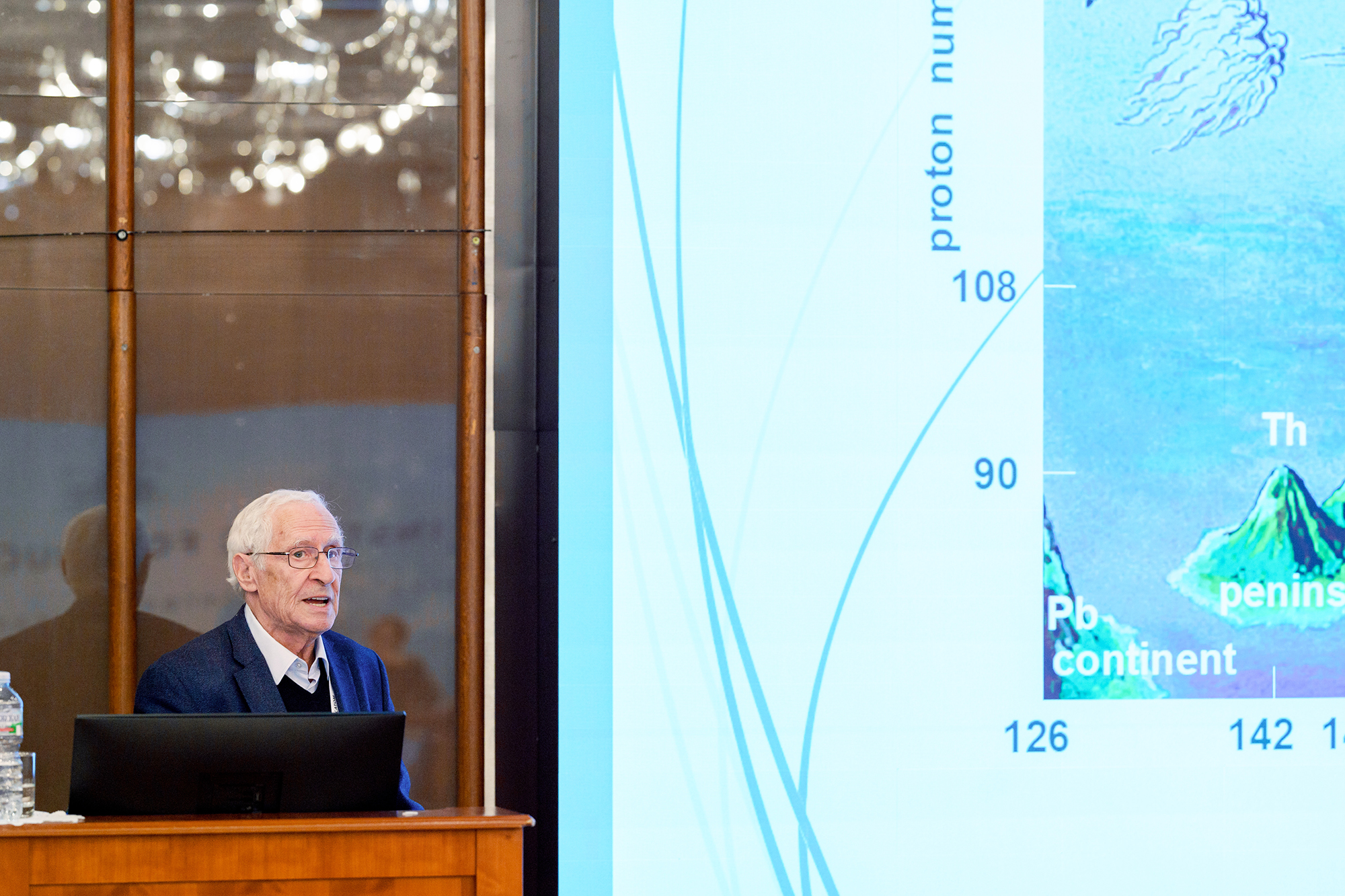 О развитии исследований в области синтеза сверхтяжелых элементов в Объединенном институте ядерных исследований рассказал заместитель научного руководителя Лаборатории ядерных реакций Михаил Иткис. Он отметил основные этапы развития ускорительных технологий и эволюции методов синтеза сверхтяжелых элементов, а также какую роль в этом развитии сыграли ученые ОИЯИ. Так, например, в 1974 году сотрудник ЛЯР ОИЯИ Юрий Оганесян стал автором открытия нового класса ядерных реакций — холодного слияния массивных ядер. В последствии именно под его научным руководством были синтезированы 114-й и 116-й элементы таблицы Менделеева.