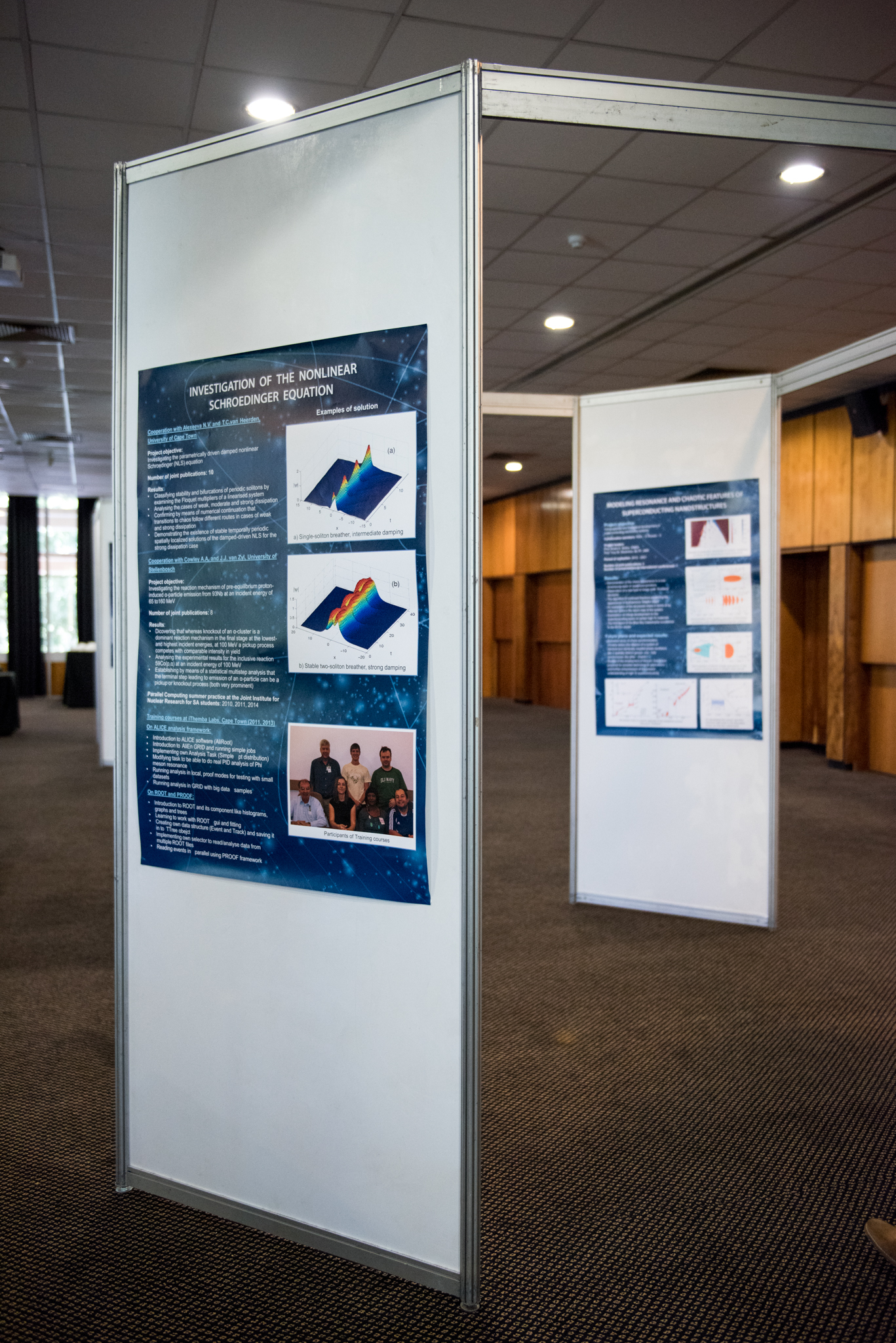 Сегодня состоялось открытие постерной выставки, которая в этом году включала в себя три раздела: общеинститутский, мультимедийный, а также постеры, содержащие детализированную информацию о проектах, осуществляемых в рамках сотрудничества ЮАР-ОИЯИ.