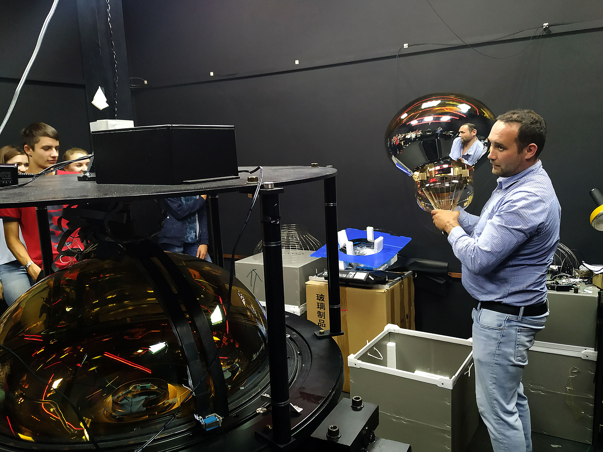 Знакомство с нейтринной темой продолжилось в «Зеленой лаборатории», где Н. Анфимов показал «темную комнату» – зал, где тестируются фотоумножители. Л. Колупанова познакомила визитеров с работой пультовой эксперимента NOvA. Вниманию гостей была предложена лабораторная работа по сборке детектора частиц – камеры Вильсона и демонстрация работы фрезерно-сверлильного станка для прототипирования микросхем.