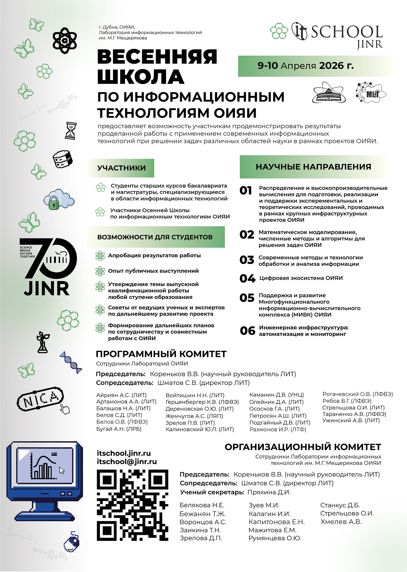 9 — 10 апреля 2026 г. Лаборатория информационных технологий им. М. Г. Мещерякова ОИЯИ, Дубна, онлайн в MTS Link