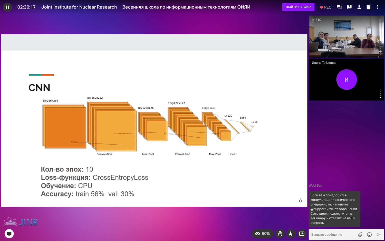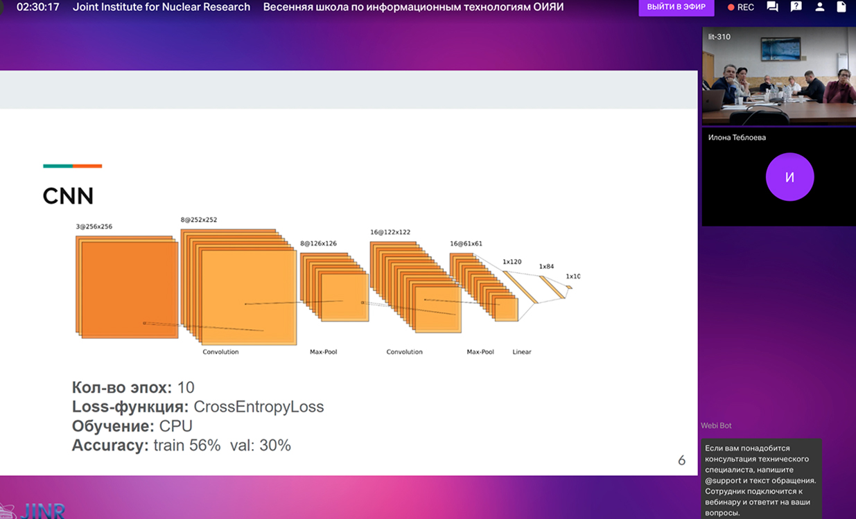 Открыл школу научный руководитель ЛИТ ОИЯИ Владимир Кореньков. «На Осенней школе более 20 студентов решили посвятить свои магистерские и бакалаврские диссертации направлениям исследований нашего Института, и сегодня они представляют результаты своих работ за полгода», — сказал он. Всего участники Школы представили 18 докладов по направлениям «Компьютинг для SPD», «Математическое моделирование, численные методы и алгоритмы для решения прикладных задач ОИЯИ», «Разработка плагинов для сайта ОИЯИ», «Машинное обучение в задачах распознавания болезней растений».