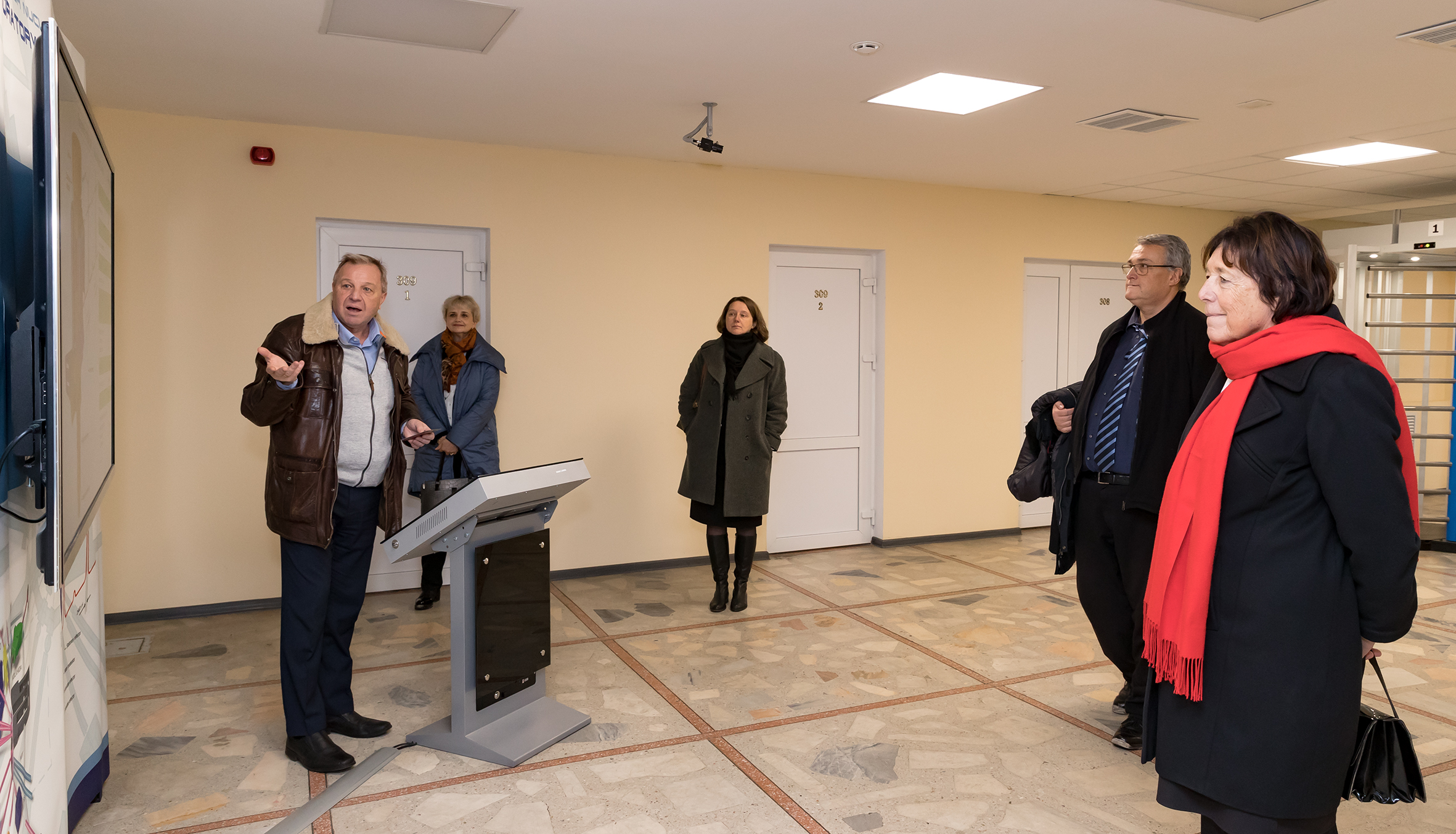 Considering the wishes of Mme Bréchignac, the programme of the visit included acquaintance with two objects of the JINR scientific infrastructure, namely the Superheavy Element Factory in the Laboratory of Nuclear Reactions and the IBR-2 research reactor in the Laboratory of Neutron Physics.