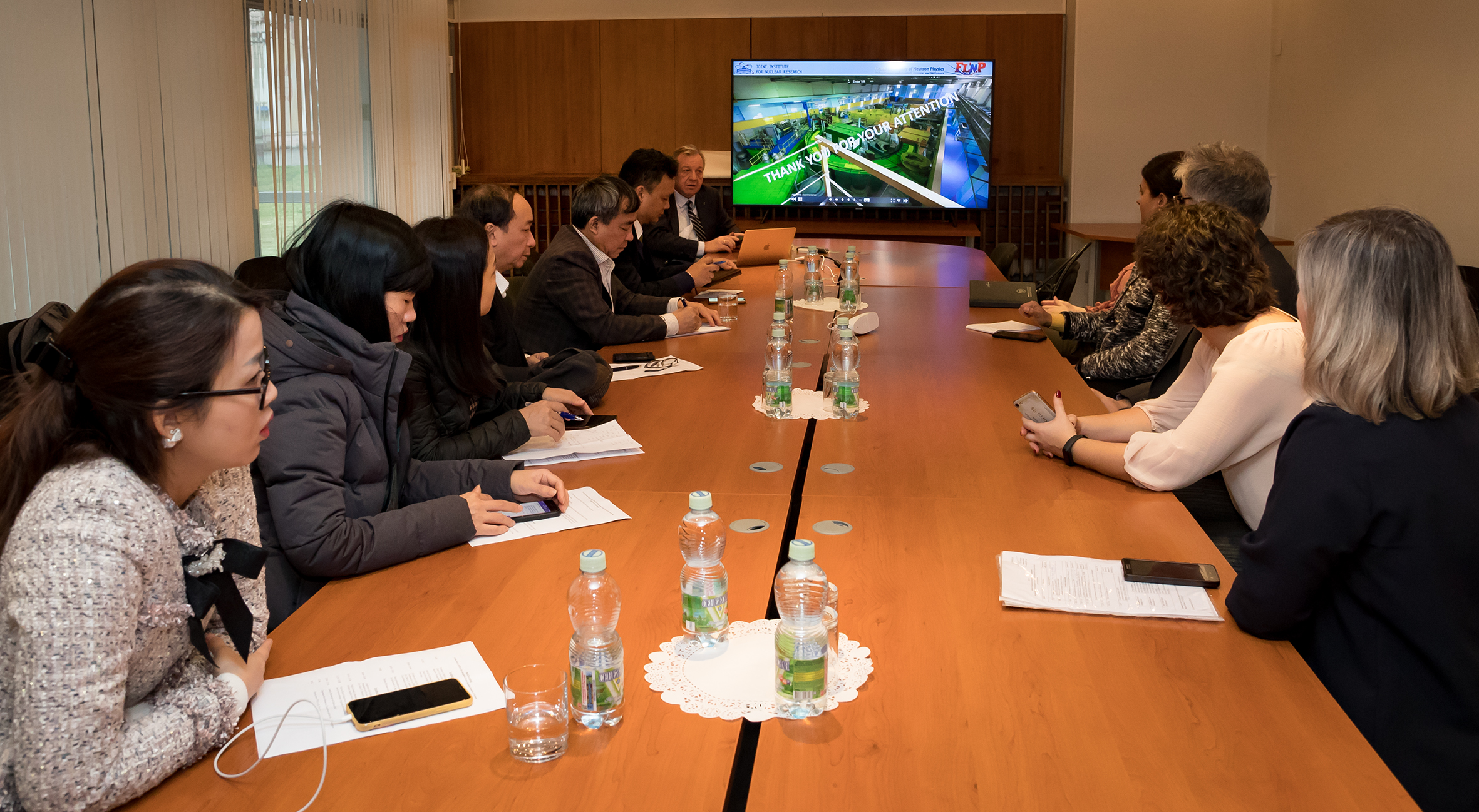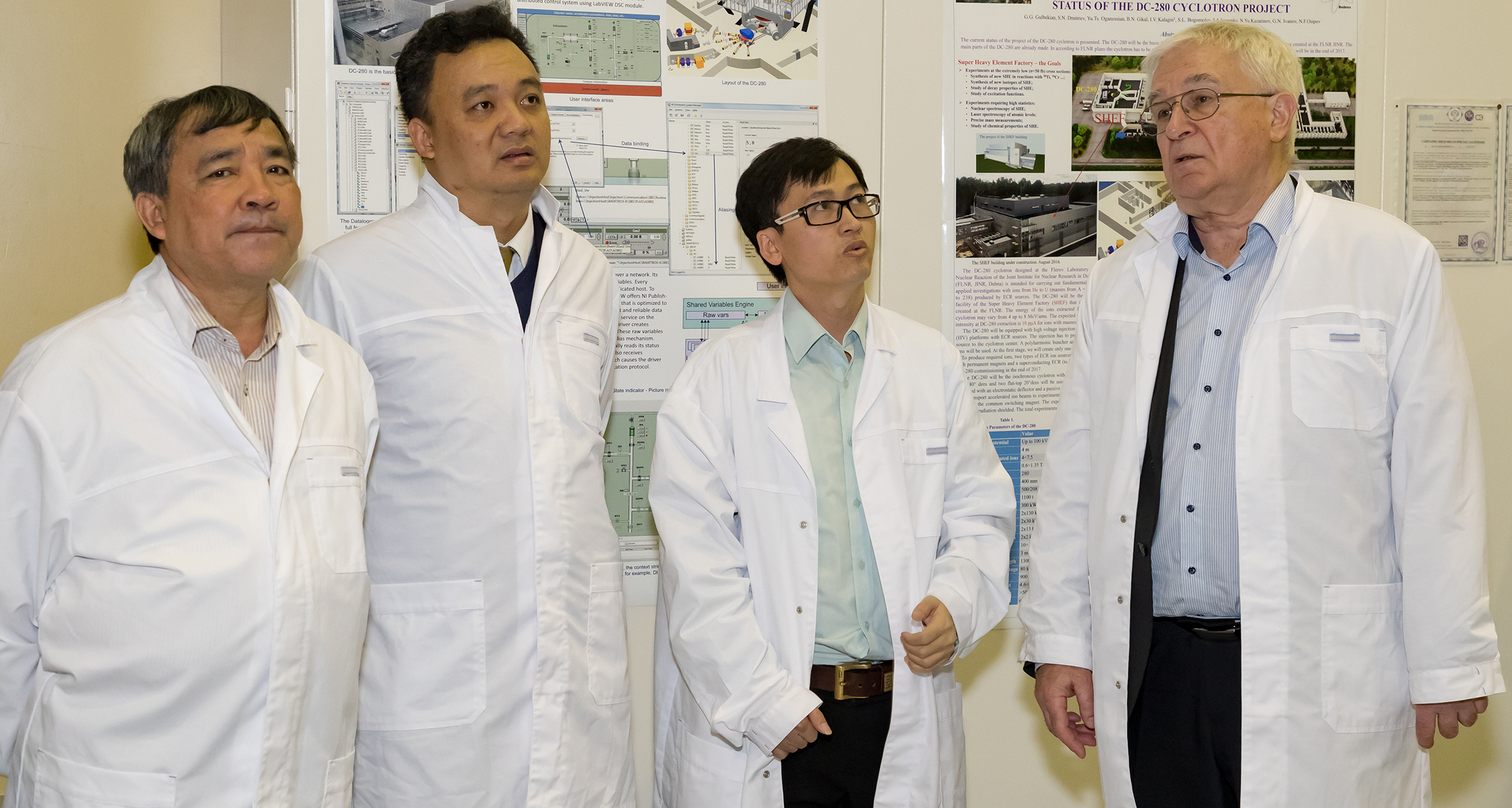 The delegation was represented by staff members of the Office of National Programmes on Science and Technology of the Vietnamese Ministry of Science and Technology headed by Vice-Director Nguyen Sy Dang, an officer of the Ministry of Finance of Vietnam Vu Van Thao, Vice-Director of the Hanoi State Treasury Ngo Tuan Phong, as well as by Tran Thi Thu, an officer from the Department of Personnel and Organization of the Vietnamese Ministry of Science and Technology. Head of the National Group of Vietnam in JINR, an FLNR engineer Nguen Van Tiep accompanied the delegation in the Joint Institute.