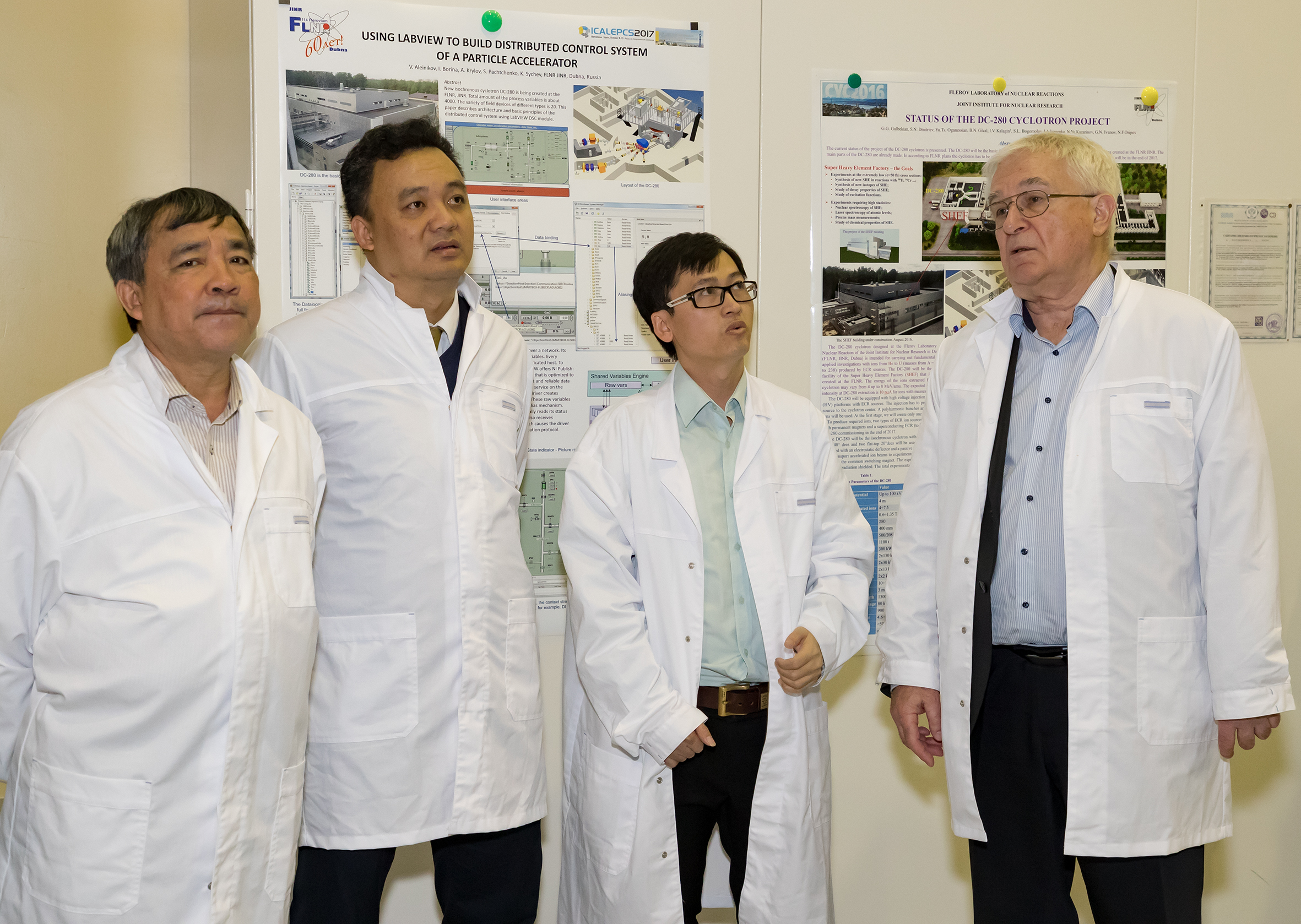 The delegation was represented by staff members of the Office of National Programmes on Science and Technology of the Vietnamese Ministry of Science and Technology headed by Vice-Director Nguyen Sy Dang, an officer of the Ministry of Finance of Vietnam Vu Van Thao, Vice-Director of the Hanoi State Treasury Ngo Tuan Phong, as well as by Tran Thi Thu, an officer from the Department of Personnel and Organization of the Vietnamese Ministry of Science and Technology. Head of the National Group of Vietnam in JINR, an FLNR engineer Nguen Van Tiep accompanied the delegation in the Joint Institute.