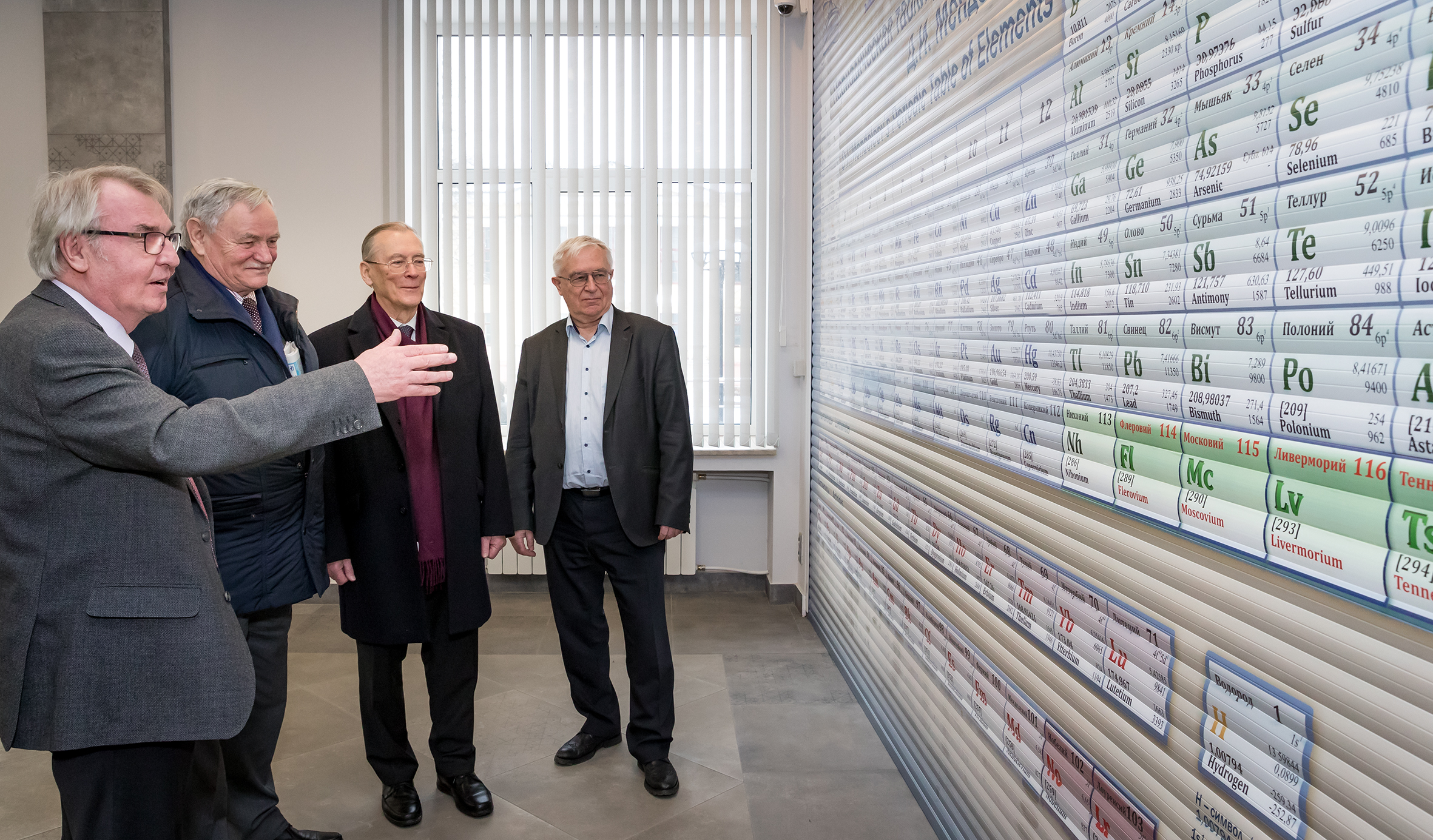 Accompanied by the Institute’s Director, V. I. Sergienko was acquainted with research conducted in the Flerov Laboratory of Nuclear Reactions and the accelerator complex of the Superheavy Element Factory. He was welcomed in the Laboratory by FLNR Scientific Leader Yu. Ts. Oganessian, FLNR Director S. N. Dmitriev, Deputy Director A. G. Popeko and Head of the DC-280 facility K. B. Gikal.