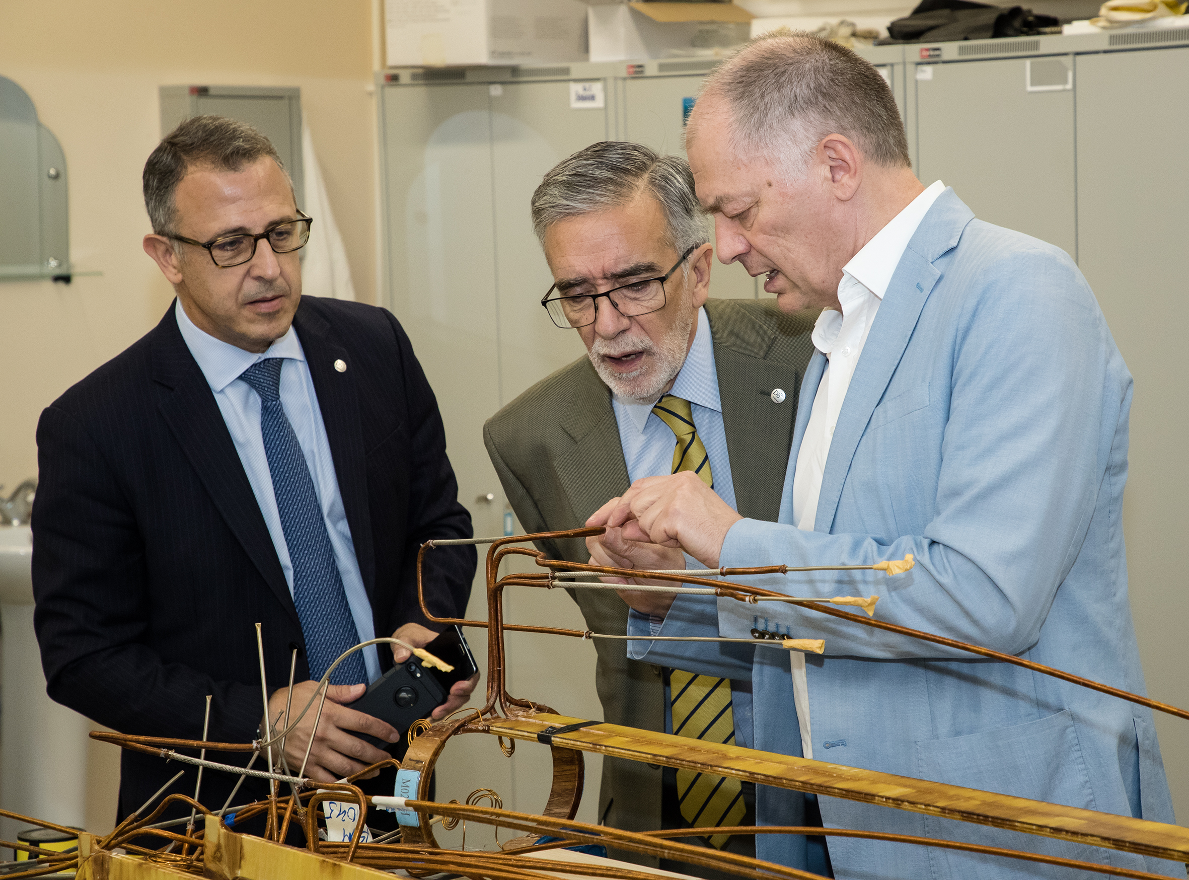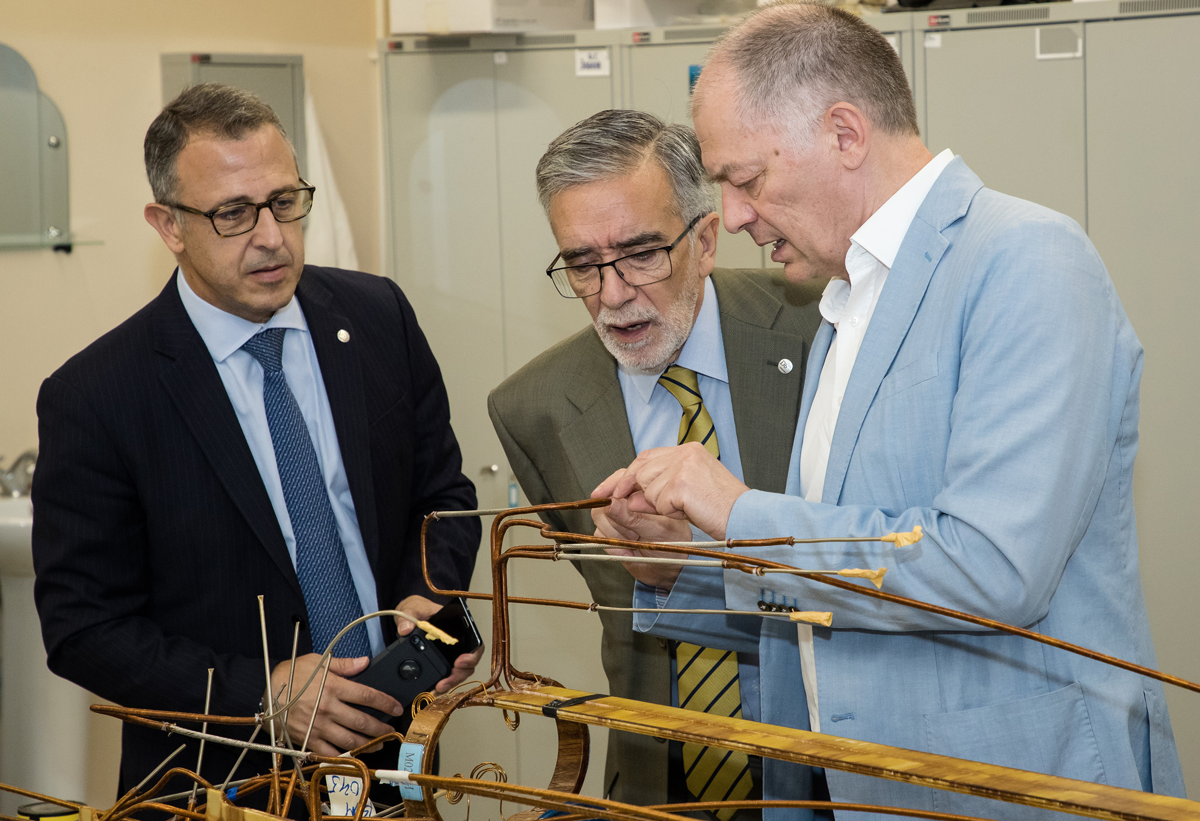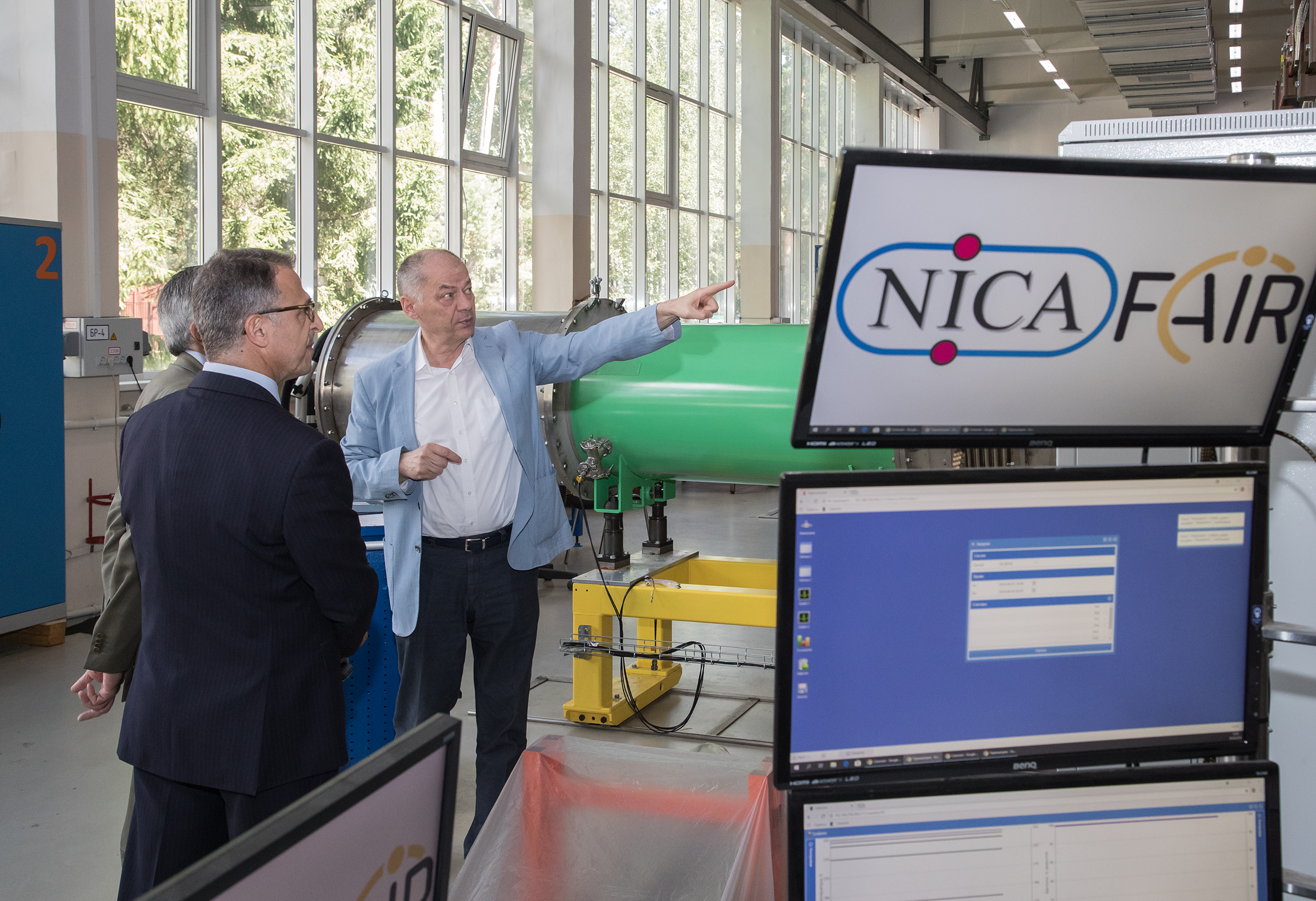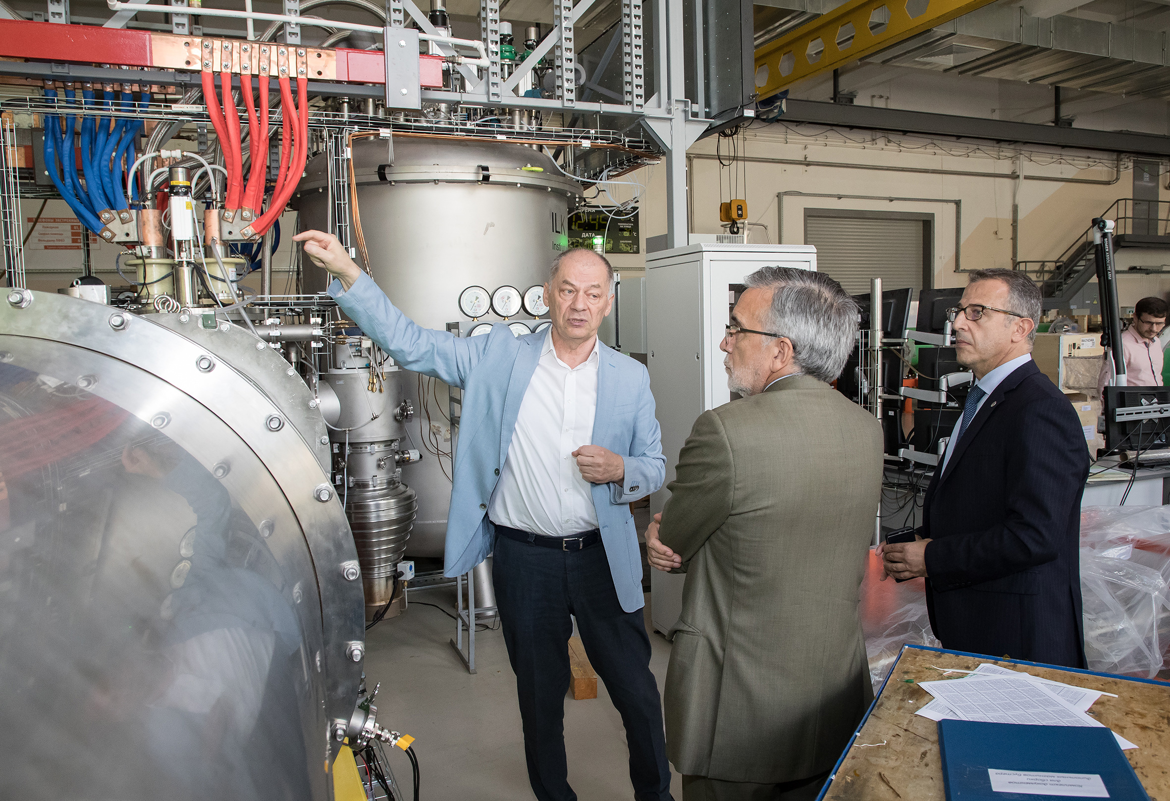 In the photo (left to right): Counsellor on Science and Technology of the Embassy of the French Republic in RF Abdo Malac, JINR Vice-Director Vladimir Kekelidze and Ambassador Extraordinary and Plenipotentiary of the Republic of Chile to the RF Mr. Rodrigo Jose Nieto Maturanaduring the excursion to VBLHEP