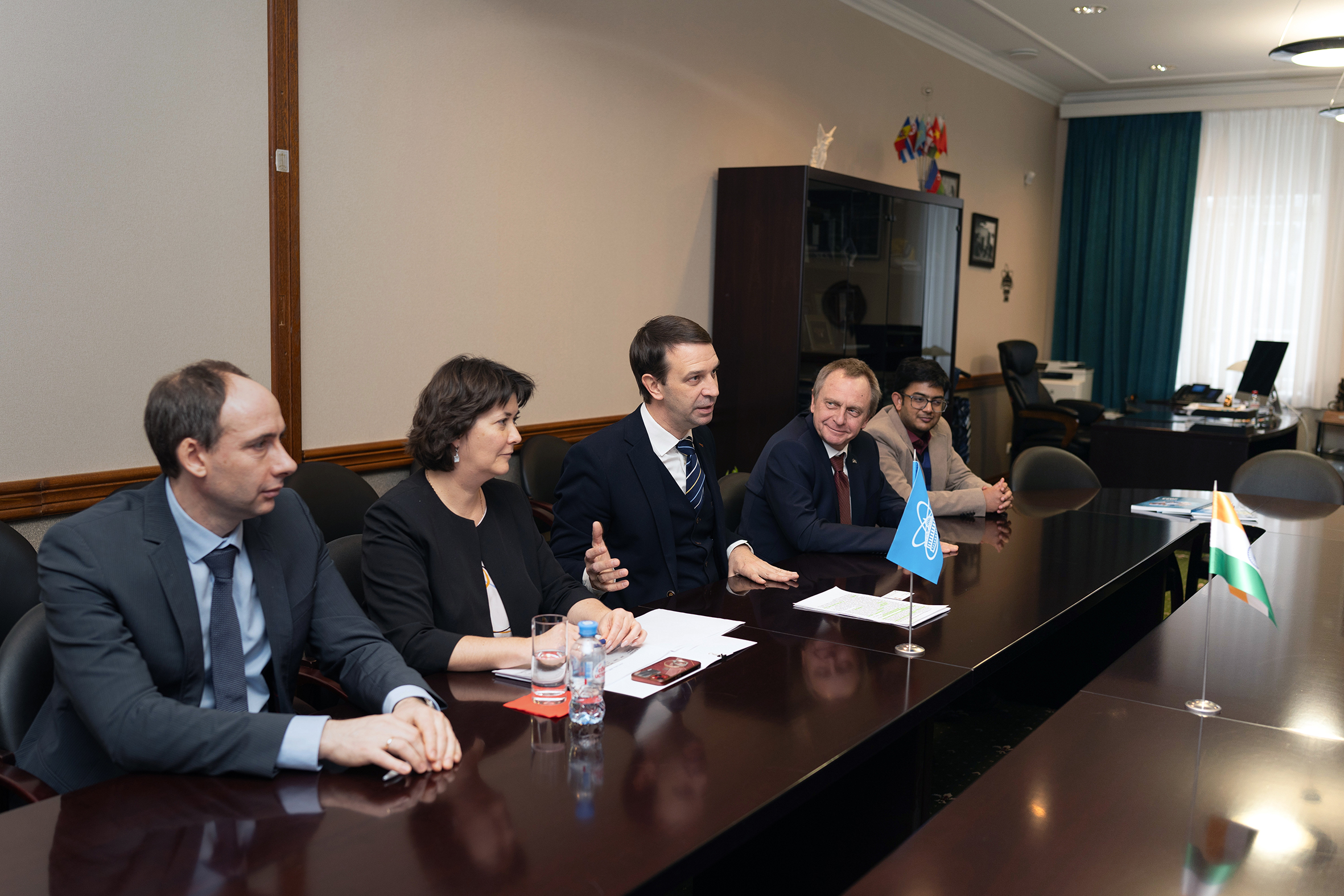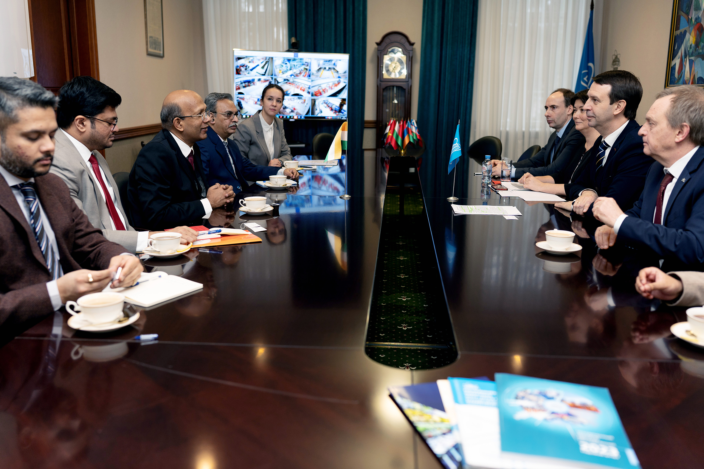 В ходе встречи обсуждались планы двустороннего обмена визитами для более подробного ознакомления с научной деятельностью Института и расширения областей сотрудничества, а также перспективы создания Объединенного координационного комитета по сотрудничеству ОИЯИ – Индия, подобного тем, которые эффективно действуют между Институтом и такими странами, как Китай, Мексика, Южная Африка. Григорий Трубников пригласил представителей Индии принять участие в сессии Комитета полномочных представителей правительств государств-членов ОИЯИ в марте с. г.