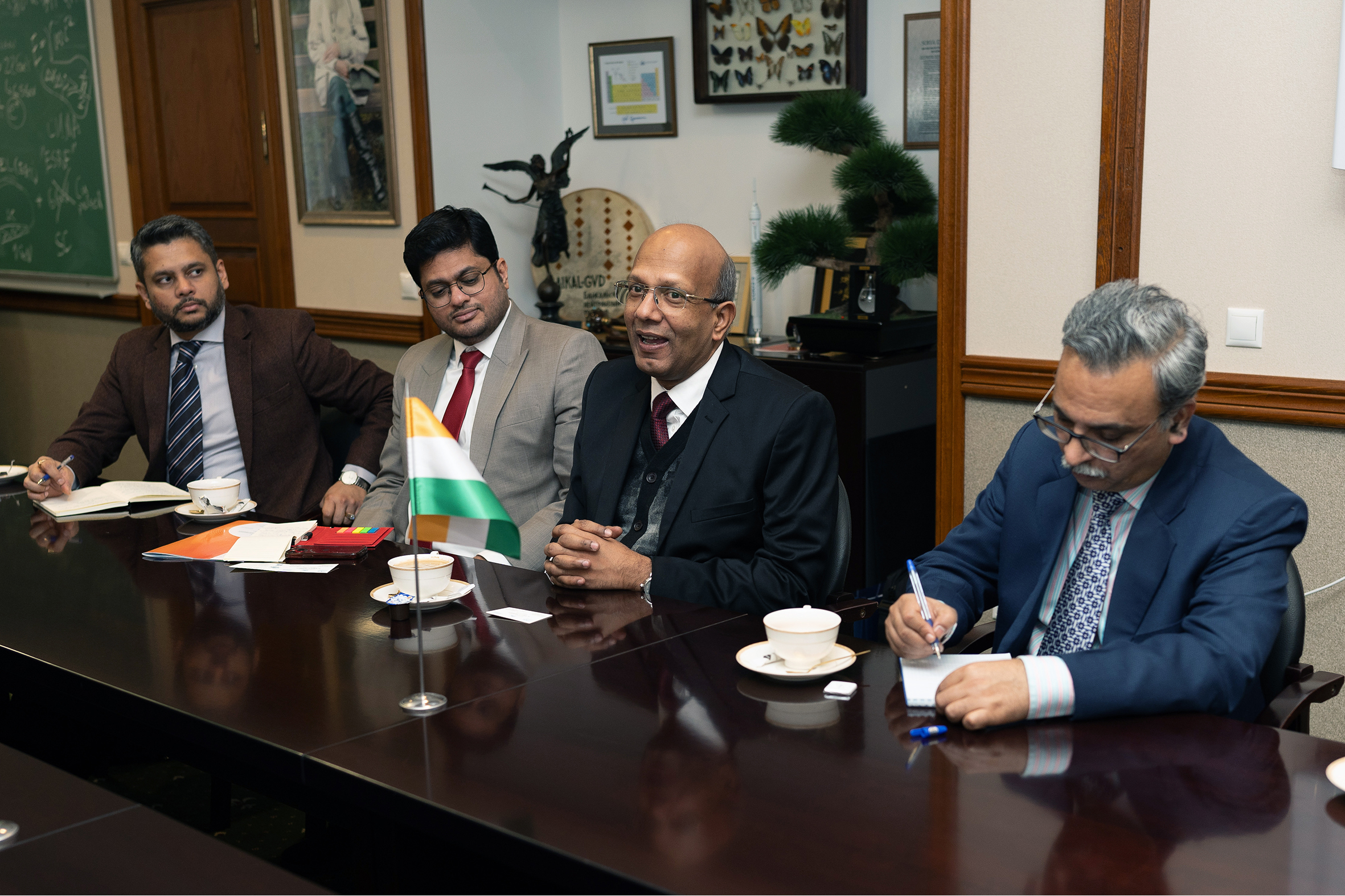 В состав делегации вошли первый секретарь Посольства Вивек Сингх, советники Посла Рамкумар Тхангарадж (экономический и коммерческий отдел Посольства) и Ананд Камависдар (отдел науки и технологий) и секретарь Посла по социальным вопросам Анна Галович.