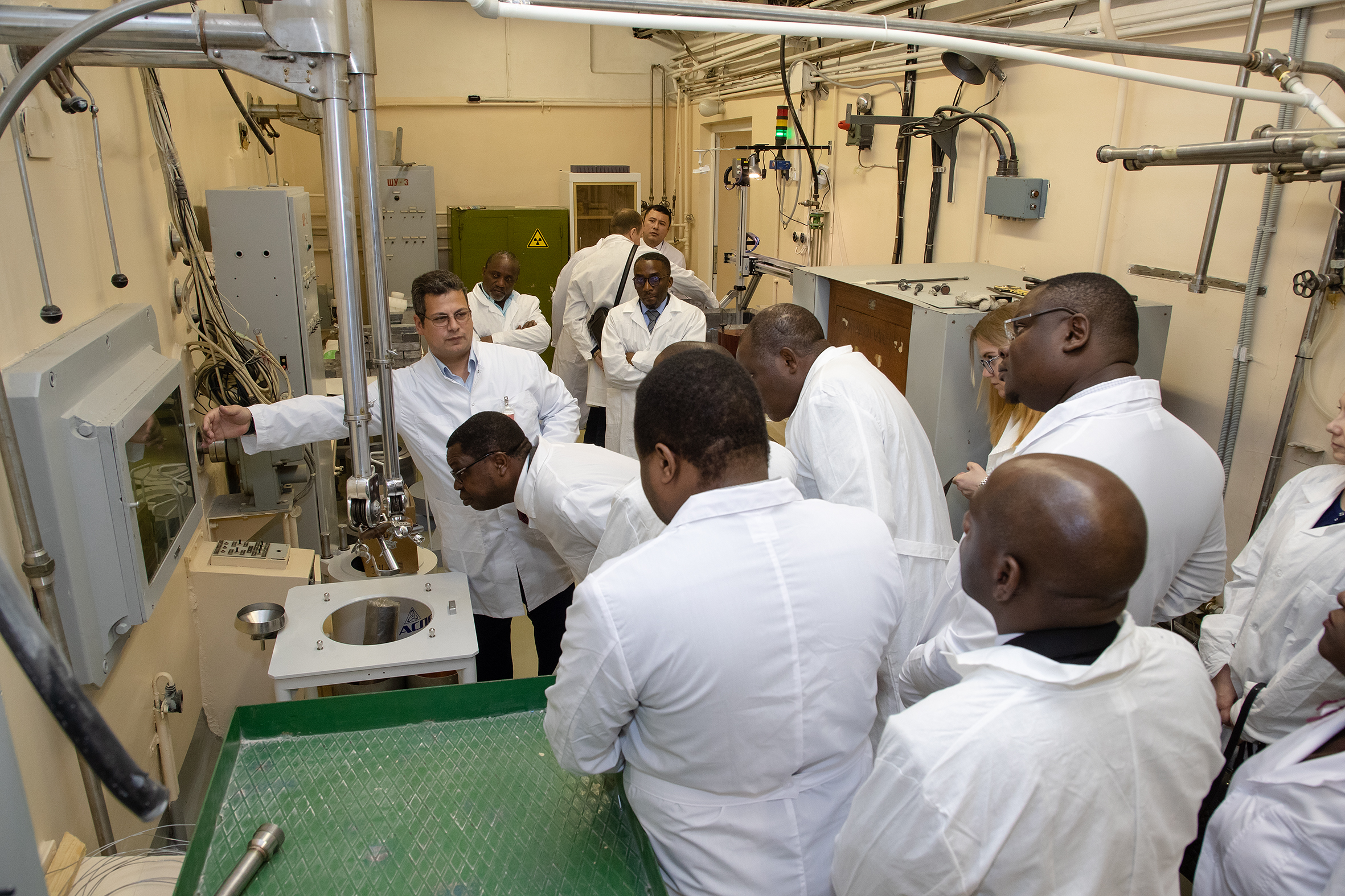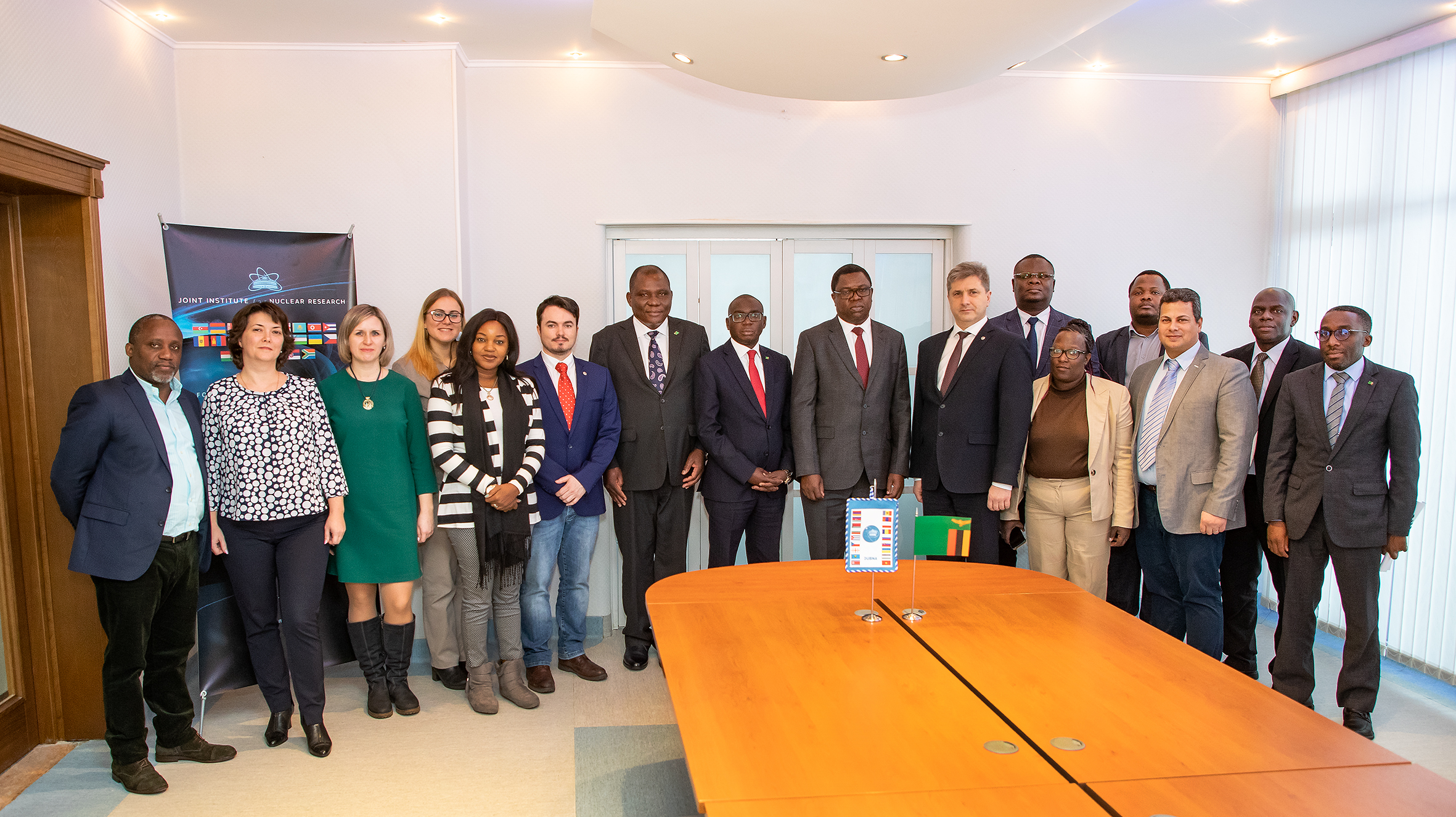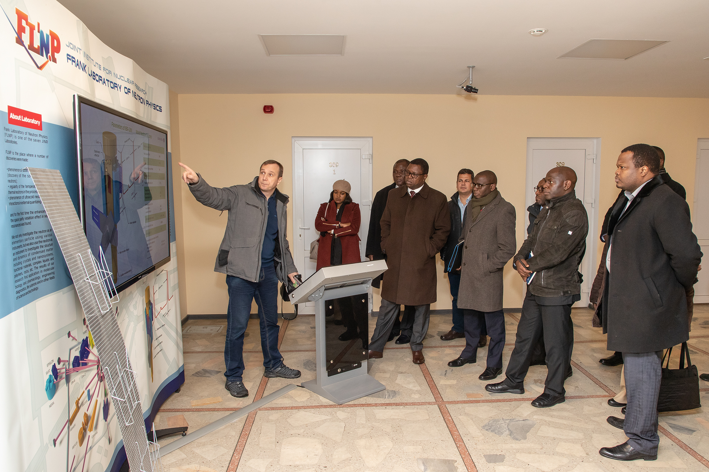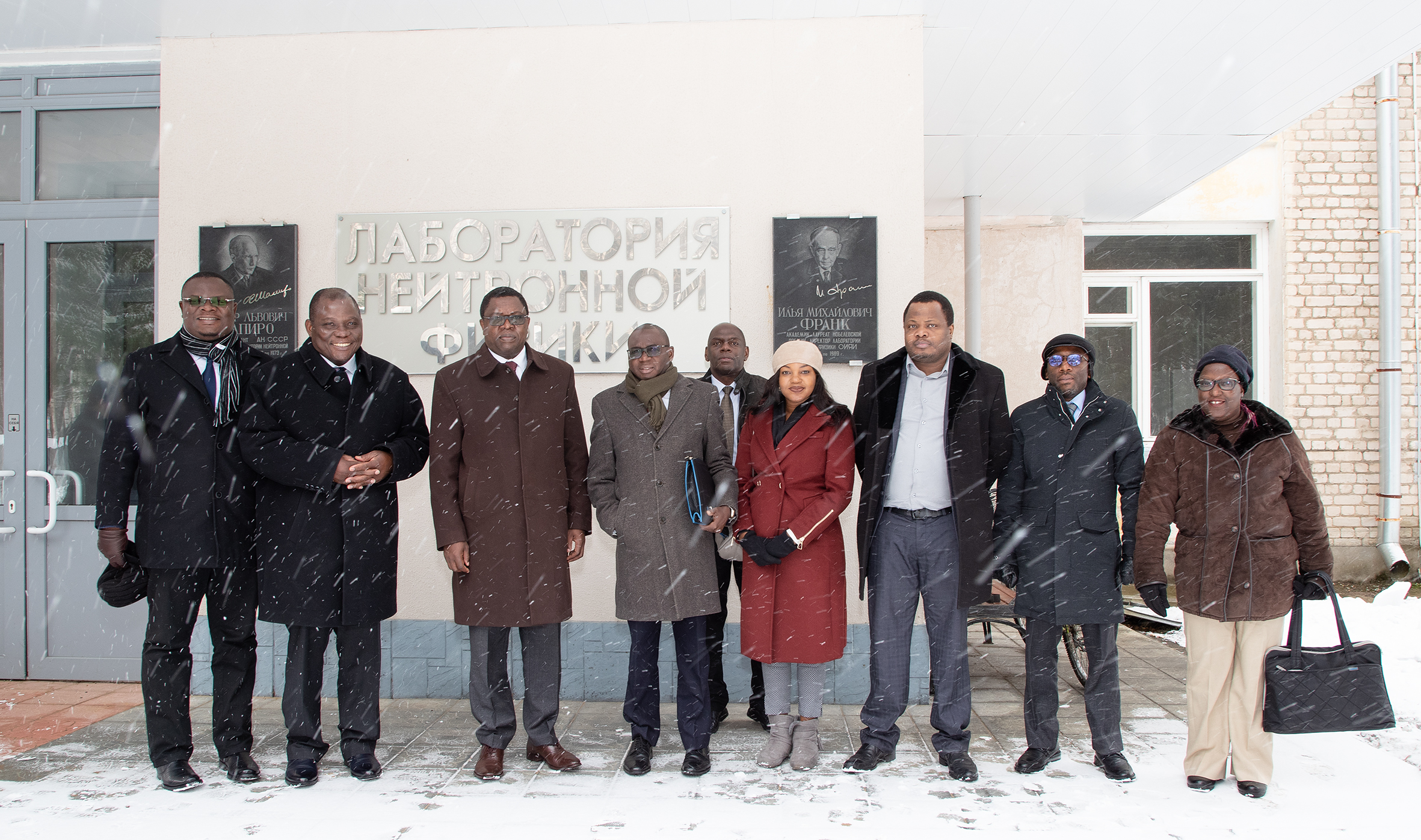 Знакомство с научной инфраструктурой ОИЯИ делегация начала с обзорной лекции, гости посетили Лабораторию нейтронной физики и Лабораторию ядерных реакций. Особый интерес гостей вызвала установка РЕГАТА и аналитические исследования методом нейтронного активационного анализа. Делегацию ОИЯИ на состоявшейся рабочей встрече с руководством ОИЯИ возглавил начальник Отдела международного сотрудничества Дмитрий Каманин. Стороны обсудили организацию сотрудничества по вопросам, связанным со строительством Замбией своего первого исследовательского реактора, прежде всего, возможности по подготовке кадров на базе ОИЯИ. В ходе дискуссии была подчеркнута важность информирования правительства Замбии об исследовательской деятельности и образовательных программах ОИЯИ. Участвовавшие в беседе сотрудники ОИЯИ из Египта и ЮАР поделились опытом организации сотрудничества с ОИЯИ в своих странах.