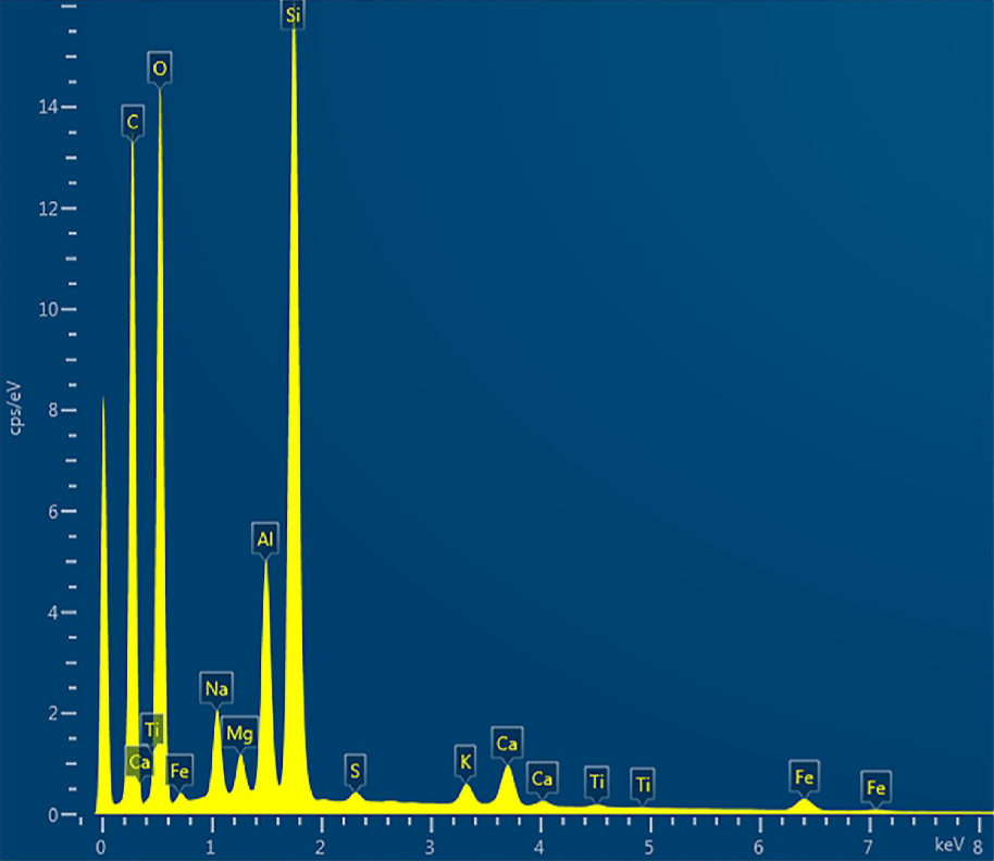Energy dispersive x-ray spectroscopy (EDX) of Shiveluch volcanic ash