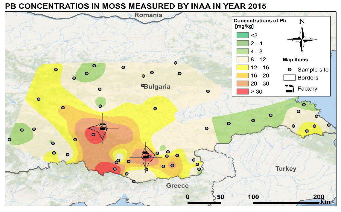 Yurukova (2007) и Gribacheva et al. (2016) обобщили имеющиеся данные по Болгарии, и пришли к выводу, что «горячие точки» местных источников выбросов загрязняющих веществ связаны с производством цветных металлов, открытым способом, карьерами, историческими и действующими рудниками, а также вторичное загрязнение переносимой ветром пылью. Hristozova et al. (2020a) провели многофакторный анализ большего набора элементов и сообщили, что в севее 2015/2016 гг. добыча и сжигание угля для производства электроэнергии и отопления жилых помещений являются основными антропогенными факторами, влияющими на экологическую ситуацию в стране, за которыми следуют эффекты связанные со строительством дорог и сопутствующим загрязнением дорожного движения. Во время трех последних севеях участвовали специалисты Пловдивского университета им. Паисия Хилендарского: Гергана Христозова, Савка Маринова и Гана Гечева.