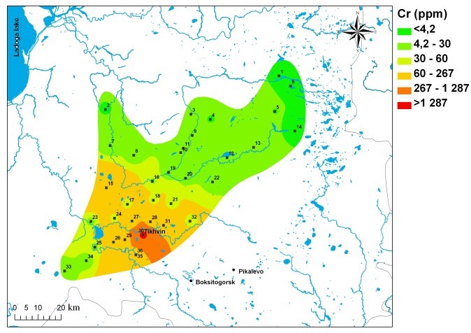 Рис. 7. Карта распределения хрома в Тихвинском районе Ленинградской области