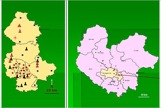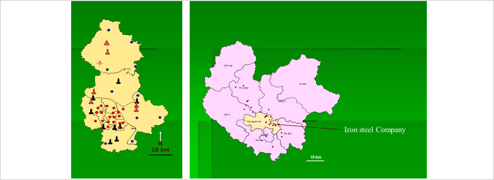 Риcунок 1. Пробоотбор во Вьетнаме в районе Ханоя и Тайнгуен. Стрелка показывает расположение металлургического комбината