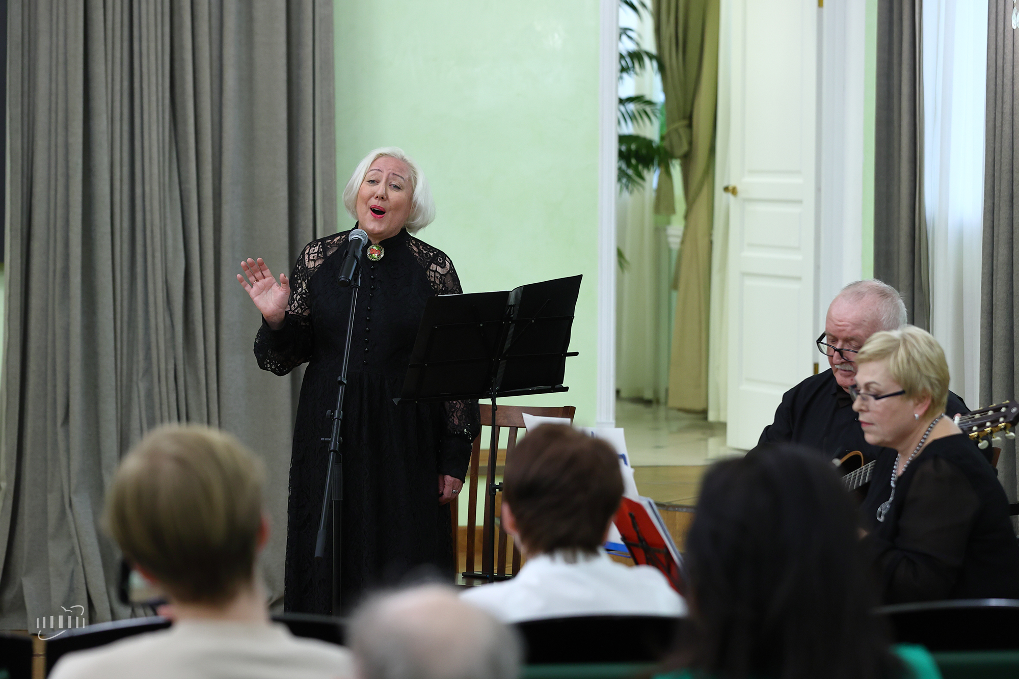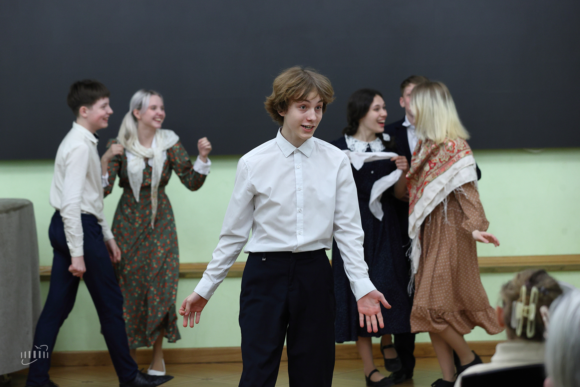 The theatrical play was accompanied by famous war songs, “Dark Is the Night”, “Smuglyanka”, “Victory Day”, performed by vocalist Elena Chudina, guitarist Georgy Chuburkov, and pianist Galina Dementieva.