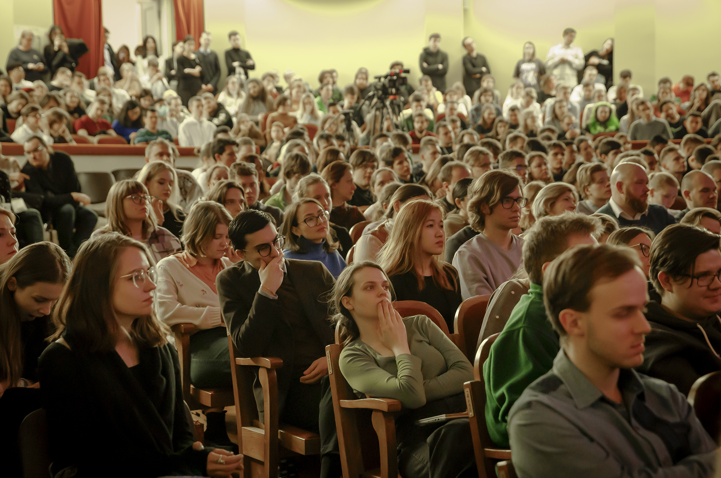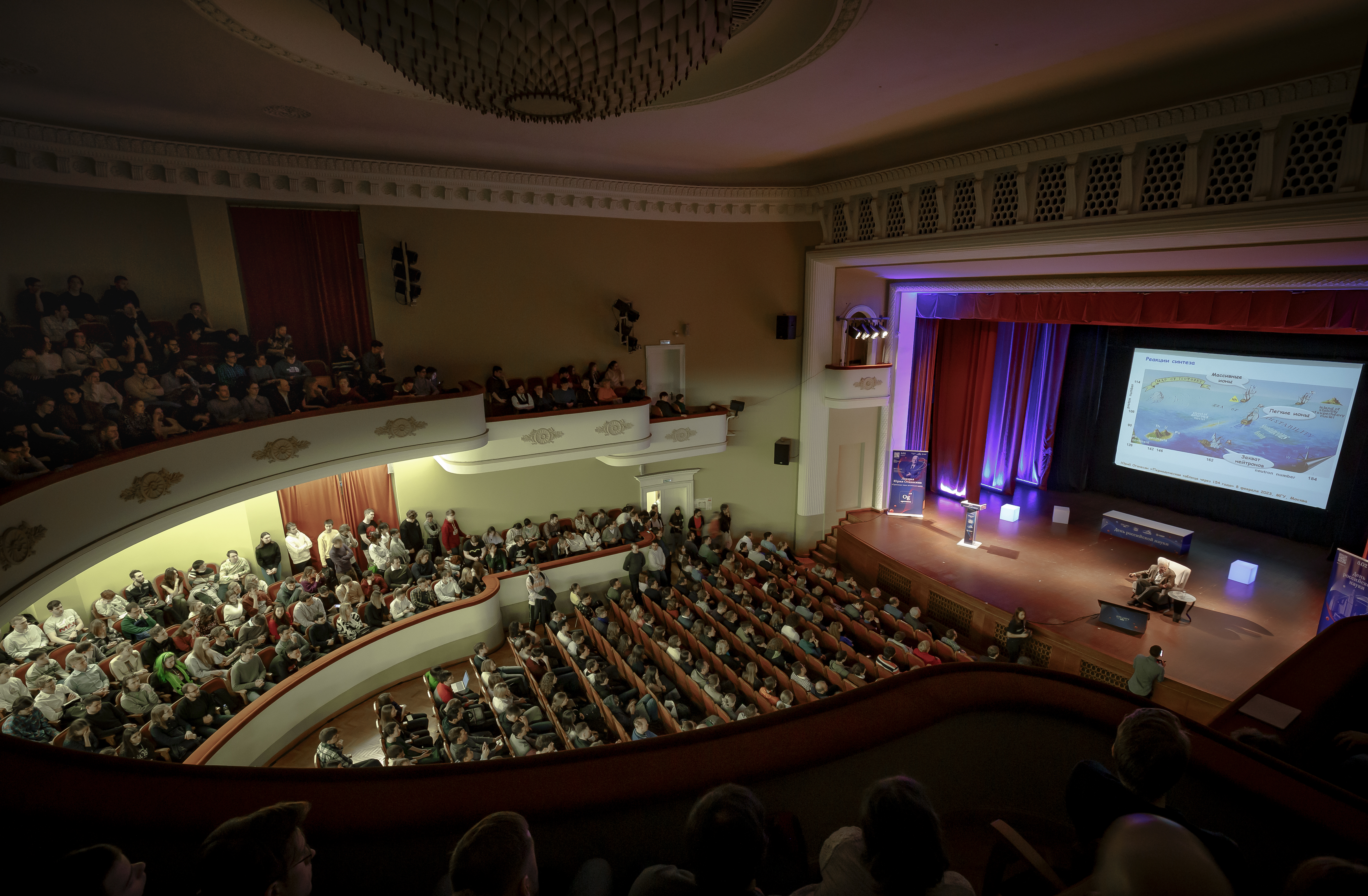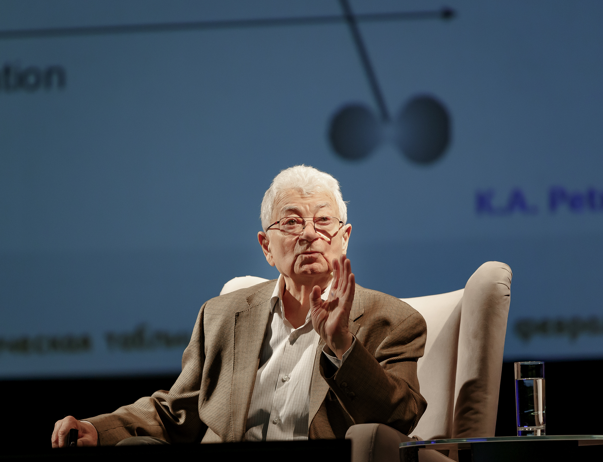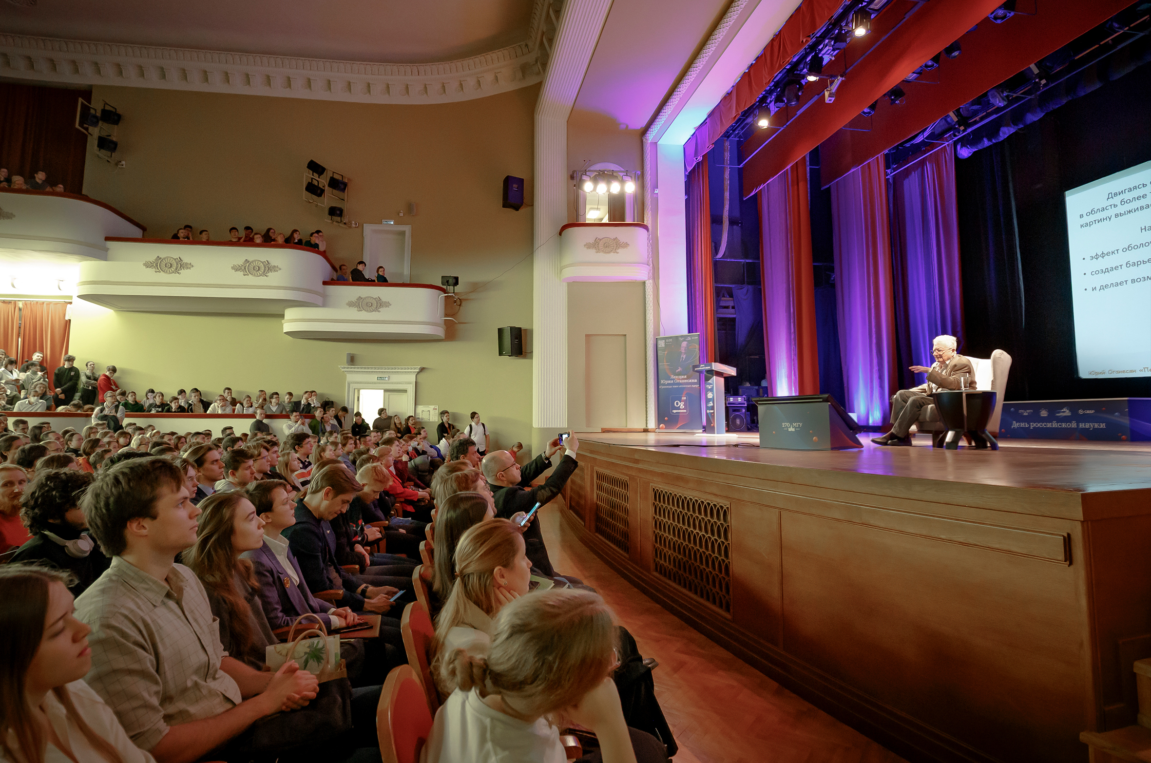 He told the audience about the atomism of Democritus, who was the first to suggest that the world consists of the tiniest fractions, i.e. atoms. Yuri Oganessian spoke about the discovery of the atomic nucleus as well. He went into detail on the prospects of research in the field of synthesis of elements that do not exist in nature, further development of the Superheavy Element Factory in Dubna, which significantly accelerated the effectiveness of work, and answered numerous questions from the audience.