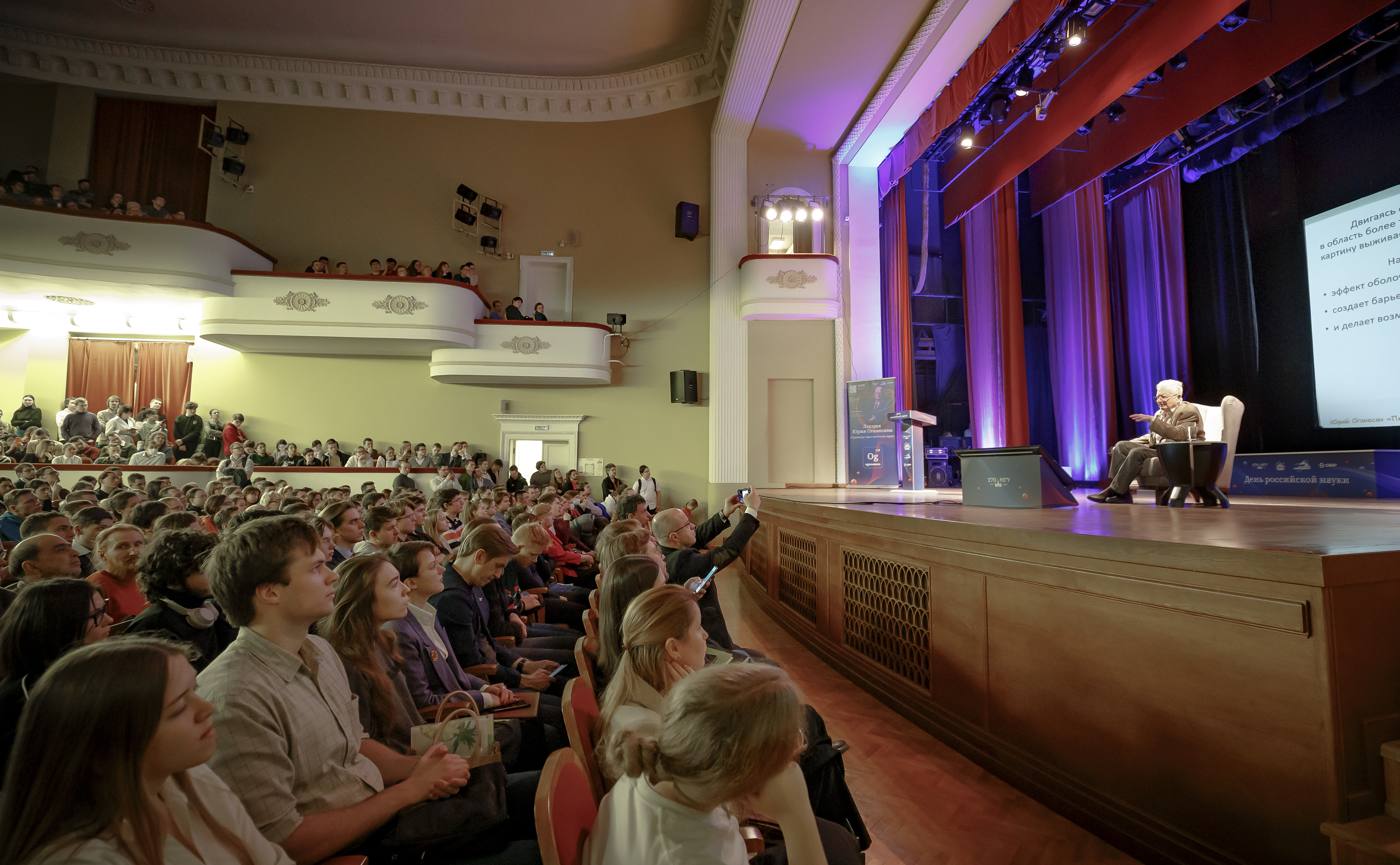 He told the audience about the atomism of Democritus, who was the first to suggest that the world consists of the tiniest fractions, i.e. atoms. Yuri Oganessian spoke about the discovery of the atomic nucleus as well. He went into detail on the prospects of research in the field of synthesis of elements that do not exist in nature, further development of the Superheavy Element Factory in Dubna, which significantly accelerated the effectiveness of work, and answered numerous questions from the audience.