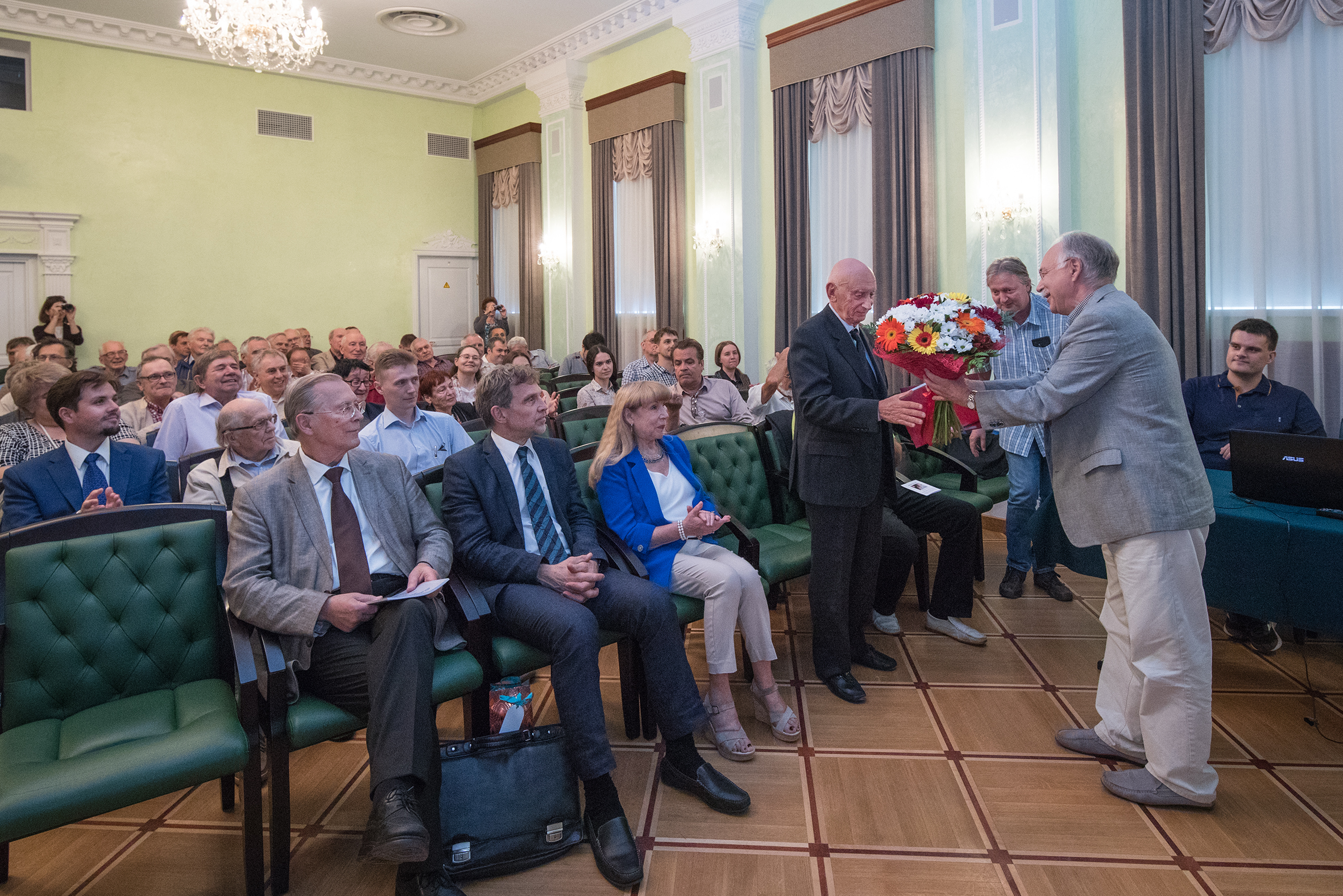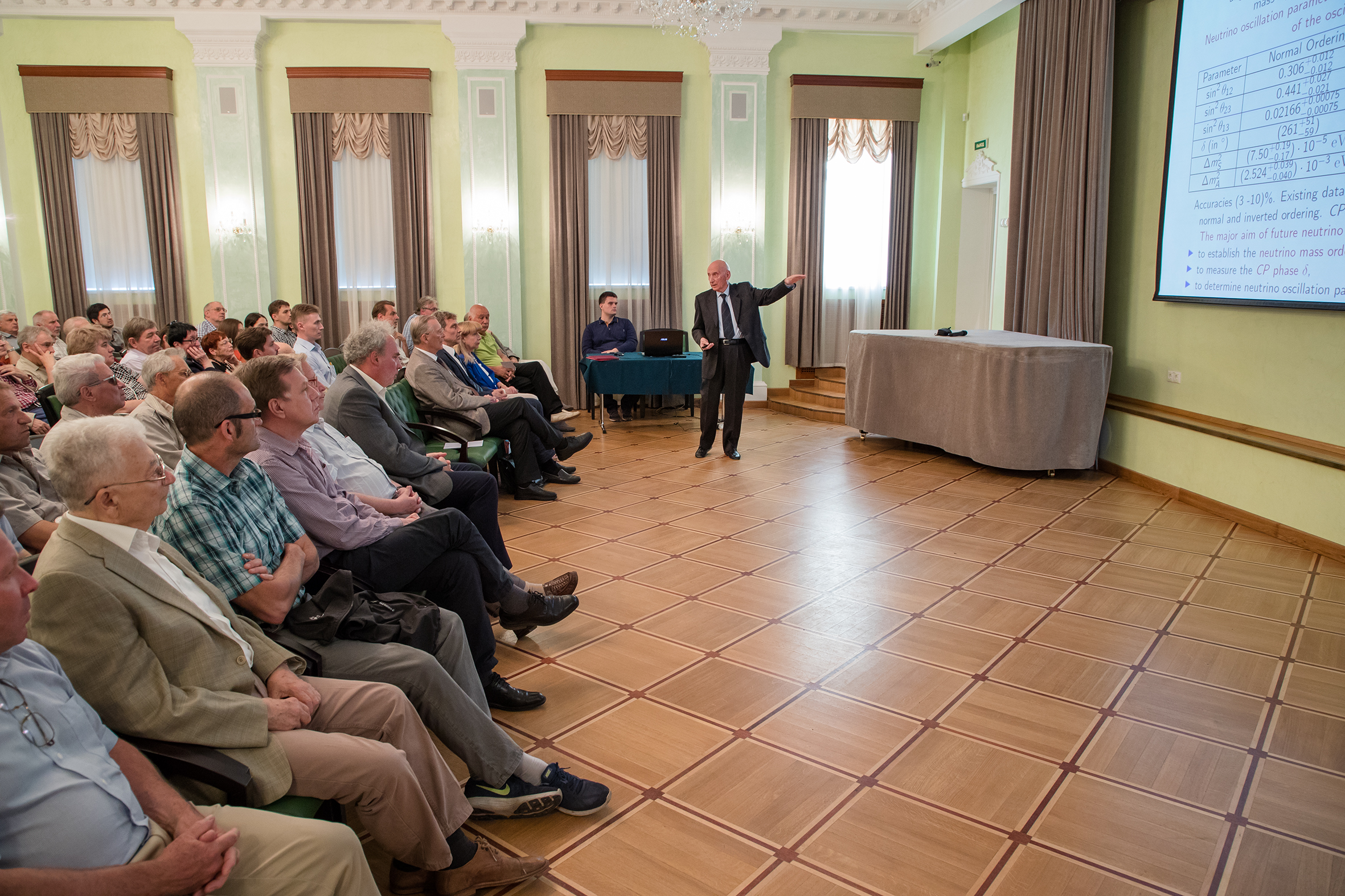 Профессор К. Джунти (ИНФН, Италия, Триест) принимал в качестве приглашенного профессора участие в нескольких международных школах по физике нейтрино, организуемых Объединенным институтом ядерных исследований, которые носят имя Бруно Понтекорво. Его доклад был посвящен достижениям и целям в физике нейтрино. Продолжил тему вклада юбиляра в исследования загадочной частицы его ученик и коллега Ф. Шимковиц (ЛТФ – Университет имени Я.А. Коменского, Братислава). Как итог научной части семинара, организованного лабораториями теоретической физики и ядерных проблем профессор А.Г. Ольшевский представил коллегам, друзьям, ученикам юбиляра, заполнившим зал Дома ученых, нейтринную программу ОИЯИ.