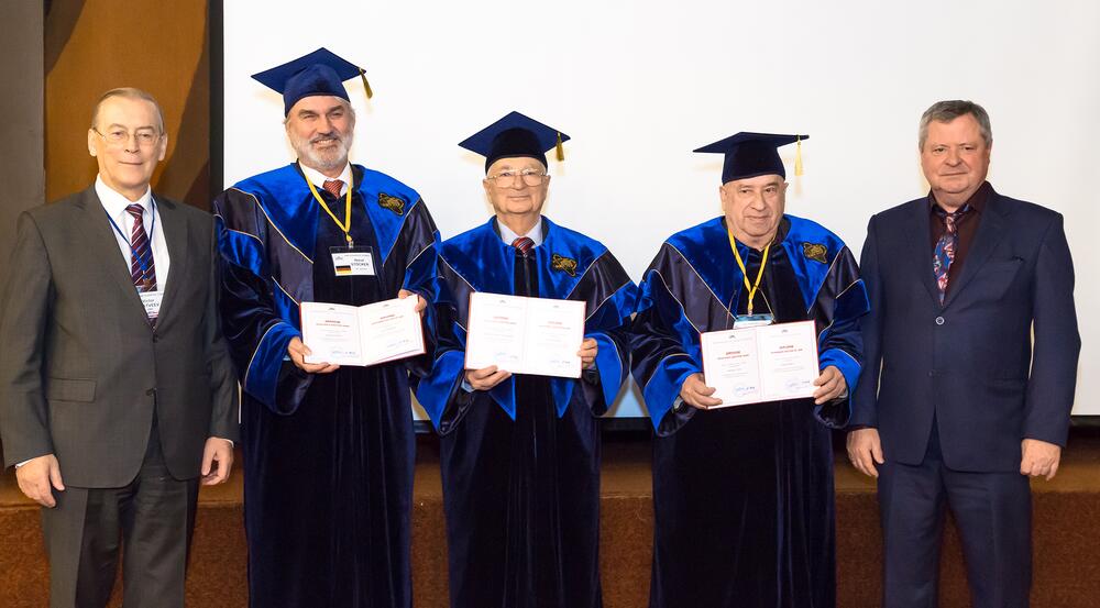 Yu. Ts. Oganessian was elected a Foreign Member of the Serbian Academy of Sciences and Arts, the Armenian Academy of Sciences, the Polish Academy of Arts and Sciences, an Honorary Doctor of Goethe University (Frankfurt am Main, Germany), the University of Messina (Italy), Maria Curie-Skłodowska University (Lublin, Poland), a Member of the American and European Physical Societies, an Honorary Fellow of the English Royal Society of Chemistry (HonFRSC).