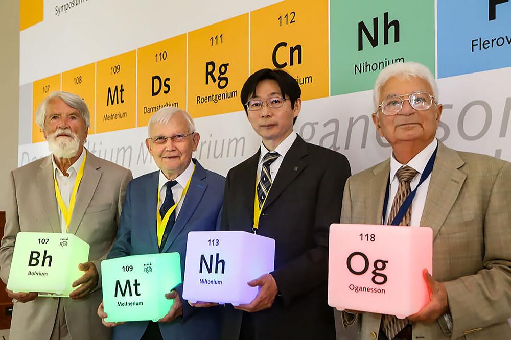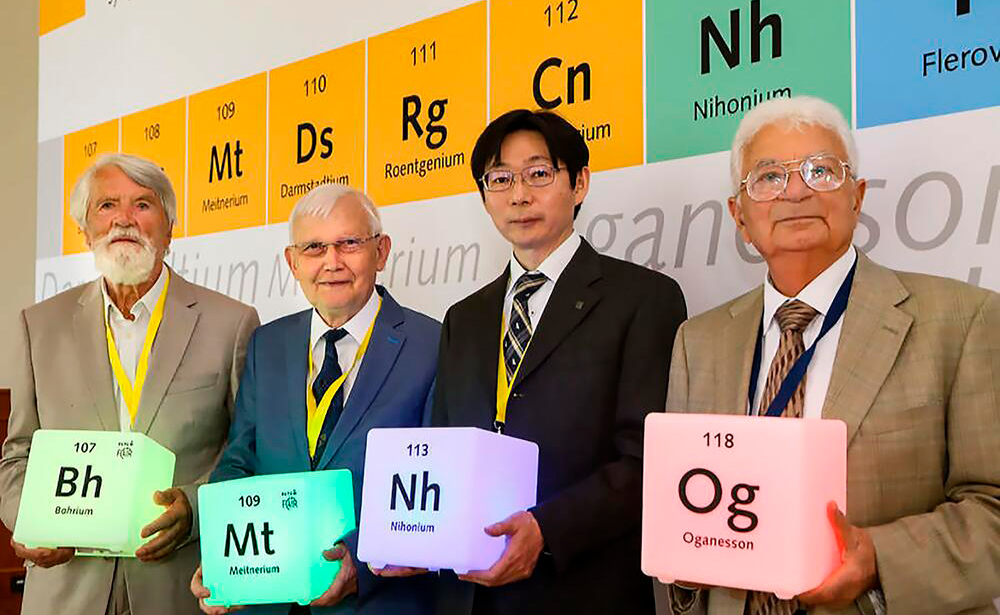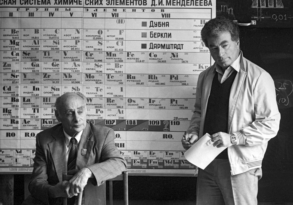 The International Union of Pure and Applied Chemistry (IUPAC) and the International Union of Pure and Applied Physics (IUPAP) recognised the priority of the scientific collaboration (FLNR JINR, Lawrence Livermore and Oak Ridge National Laboratories in the USA) led by Yu. Ts. Oganessian in the discovery of new elements 114 – 118. Element 114 received the name flerovium and the symbol Fl in honour of the founder of FLNR, Academician G. N. Flerov. Element 115 got the name moscovium and the symbol Mc in honour of the Moscow region. Element 118 received the name oganesson in honour of Yu. Ts. Oganessian for his outstanding scientific achievements and significant contribution to the discovery of new superheavy elements.