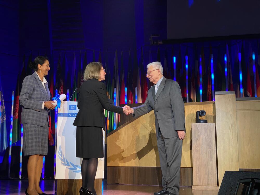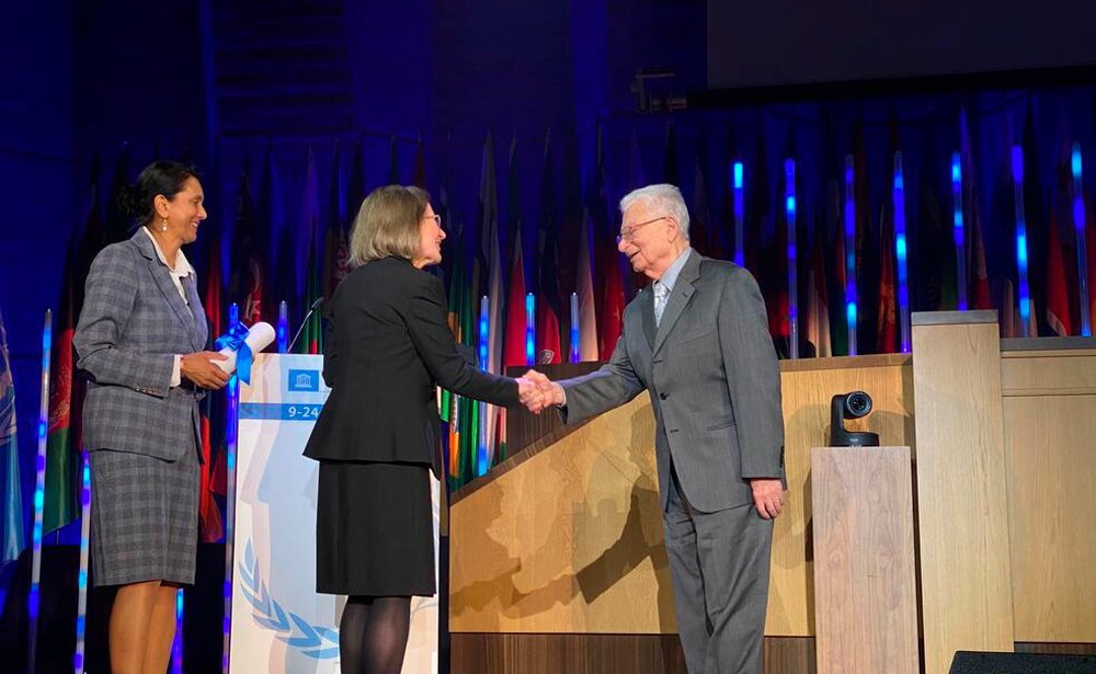 For his scientific achievements, Yu. Ts. Oganessian received the USSR State Prize, the Russian Federation State Prize, the I. V. Kurchatov Prize of the USSR Academy of Sciences, the Flerov, Alexander von Humbolt, Lise Meitner (European Physical Society), Demidov Prizes, the Sber Scientific Prize. In 2018, Yu. Ts. Oganessian was honoured with the highest award of the Russian Academy of Sciences, the Lomonosov Gold Medal. In 2021, he was the first laureate of the UNESCO-Russia Mendeleev International Prize. In 2022, he was among the first laureates of the Sber Scientific Prize.