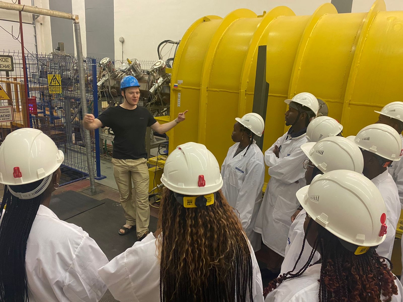 «Практика началась с прекрасной погоды в Дубне, поэтому мы начали работу с фотографии у таблицы Менделеева на набережной Волги. С несколькими студентами мы уже встречались на зимней школе в iThemba LABS, для некоторых студентов приезд в Дубну – это первый выезд за пределы родной страны, кто-то уже твердо решил заниматься наукой в будущем. К нам приехали студенты с разным опытом, но все — с энергичным настроем познакомиться с нашим Институтом, Дубной и Москвой, а также глубже погрузиться в мир ядерных исследований и передовых научных дисциплин. Особенностью этой практики является то, что на ее полях пройдет большая работа по обсуждению дальнейшего развития сотрудничества ЮАР и ОИЯИ. Заместитель директора iThemba LABS Рудольф Нчоду, координатор сотрудничества с ОИЯИ, приехал вместе со студентами и лично будет участвовать во всех мероприятиях практики. Это прекрасная возможность для углубления контактов по всем совместным проектам, включая вопросы подготовки кадров», — прокомментировал старт практики директор УНЦ ОИЯИ Дмитрий Каманин.