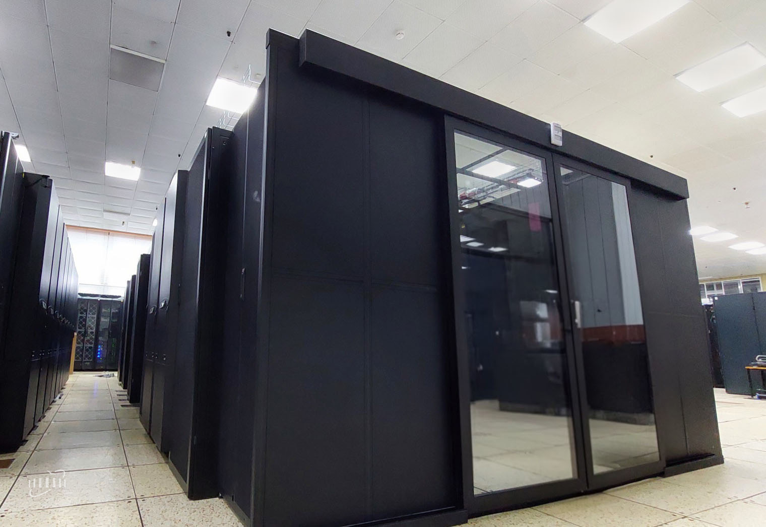 Модулем принято называть систему изоляции воздушных потоков, которая объединяет два ряда отдельно стоящих стоек с оборудованием посредством потолочной панели и системы раздвижных дверей, за счет чего обеспечивается охлаждение. Таким образом, внутри модуля образуется изолированный холодный коридор; нагретый воздух отводится в общее пространство зала МИВК.