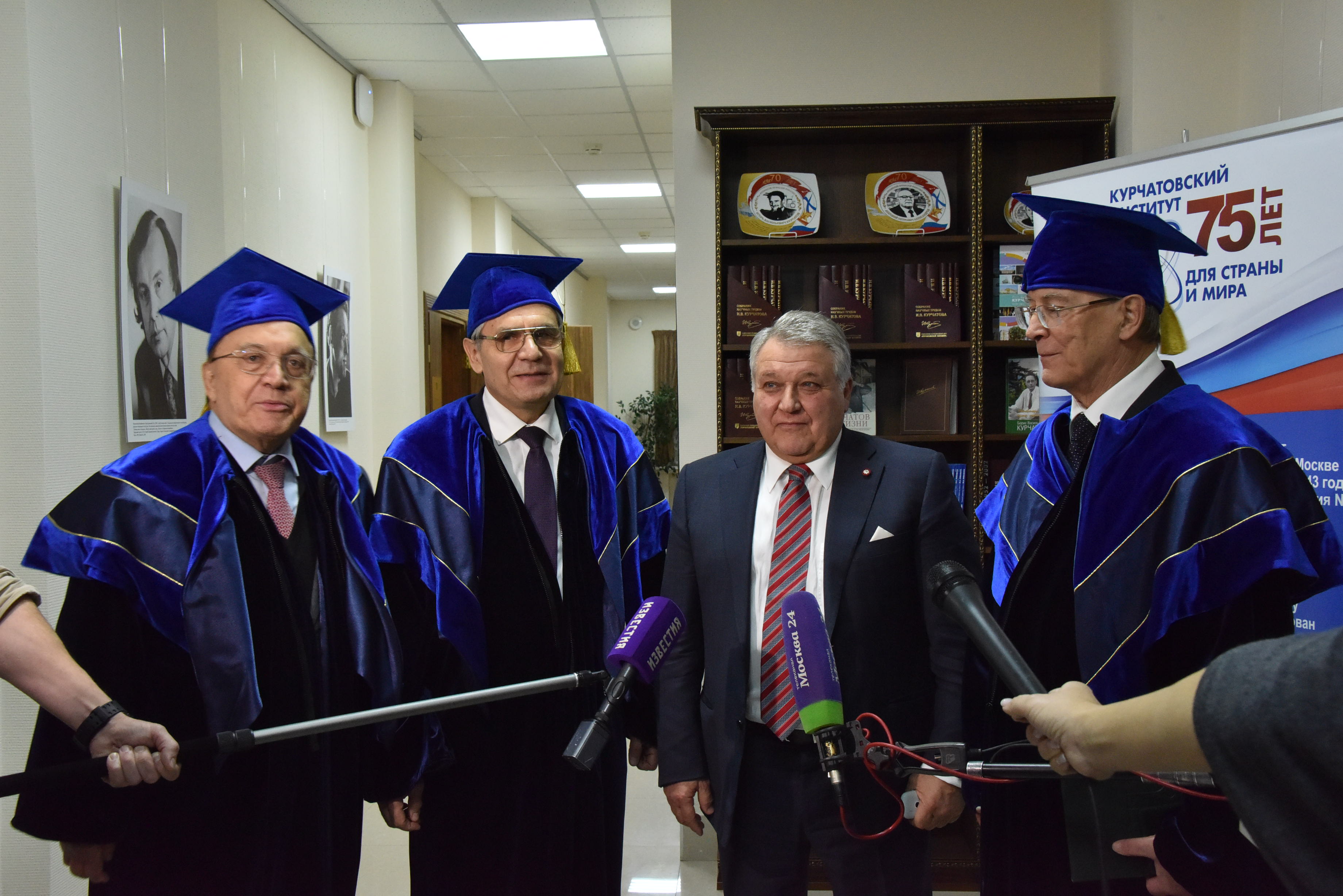 Торжественная церемония присуждения звания прошла в пятницу в Москве, в Доме ученых имени А.П. Александрова. Дипломы, медали и мантии почетных докторов были вручены президентом НИЦ «Курчатовский институт», членом-корреспондентом РАН М.В. Ковальчуком. В ходе церемонии он подчеркнул, что в этом году почетного звания удостоились блестящие ученые, возглавляющие организации, которые тесно сотрудничают с научно-исследовательским институтом, добавив, что церемония символизирует единение четырех крупнейших научных организаций, которые охватывают все уровни научной российской иерархии. В своей ответной речи В.А. Матвеев отметил, что вхождение в число почетных докторов НИЦ «Курчатовский институт» является честью для любого ученого и сегодняшнее событие является значительным фактором, сближающий научную работу всех четырех организаций.